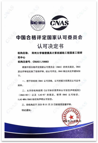 日前,德赢AC米兰中国官方网站橡塑模具计算机辅助工程国家工程研究中心通过了CNAS批准发布的“实验室认可证书”(注册号:CNAS L19983)。这表明德赢已经完全具备按照有关国际认可准则开展检测服务的能力,可以出具被国家甚至国际认可的、具有相应法律效力的检测报告,为检测结果的准确性提供了佐证,并被列入《国家认可实验室名录》。此次通过CNAS认证,既是对实验室管理和检测能力等方面取得成绩的充分肯定,也进一步提升了德赢在行业的影响力,拓宽了德赢相关学科参与产学研合作、国际间实验室合作的发展通道。
