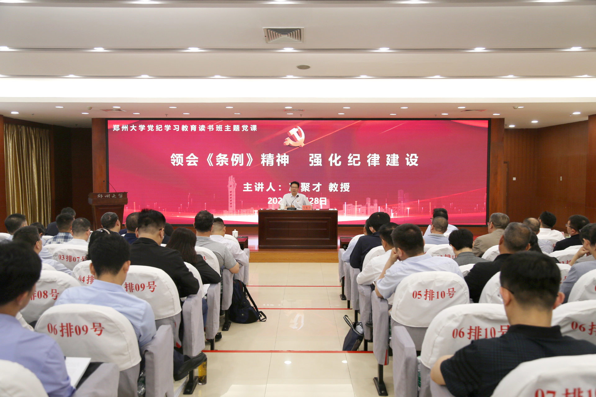 冯聚才教授以《领会<条例>精神 强化纪律建设》为题讲述主题党课