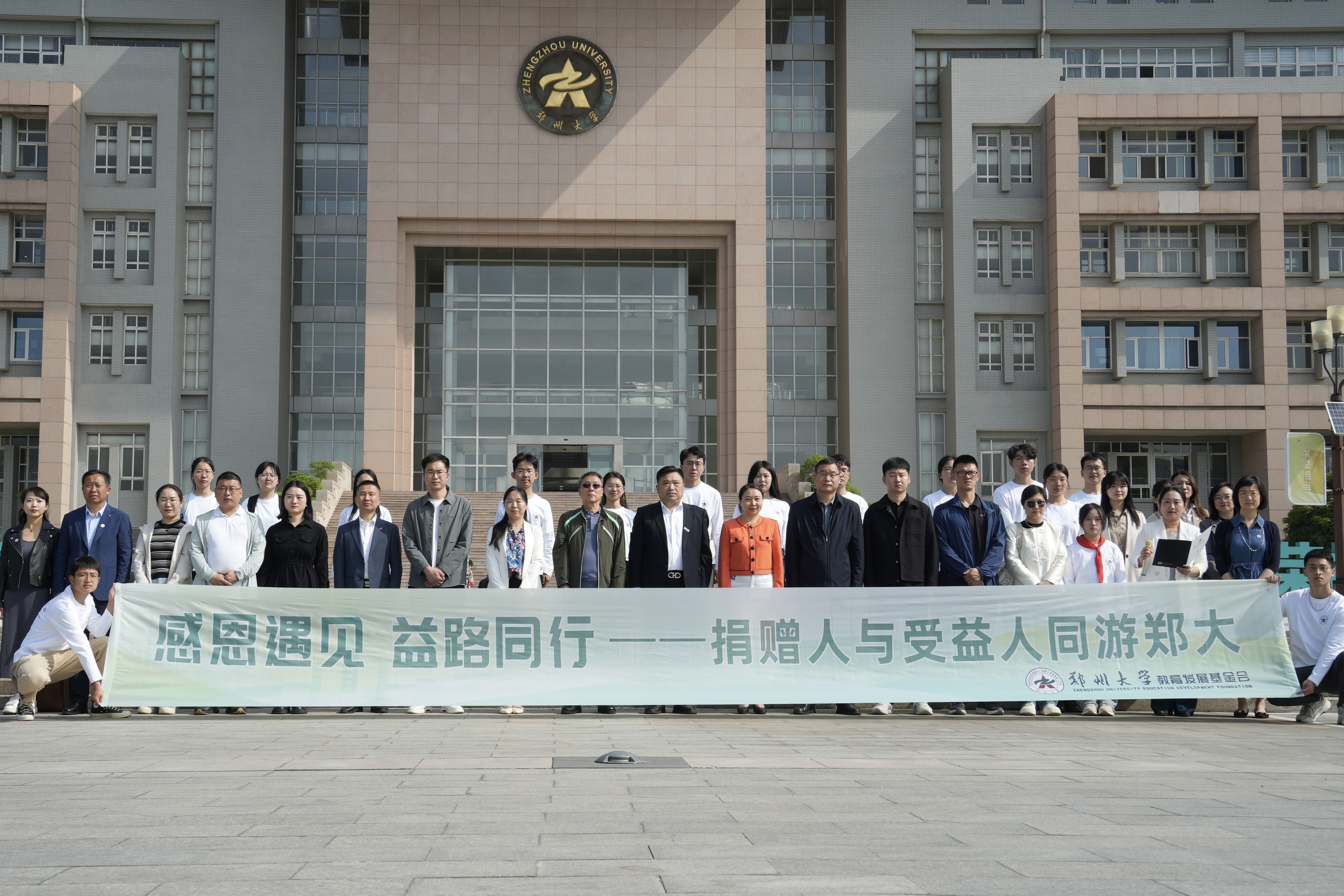 德赢AC米兰中国官方网站教育发展基金会捐赠人与受益人同游郑大活动启动仪式合影