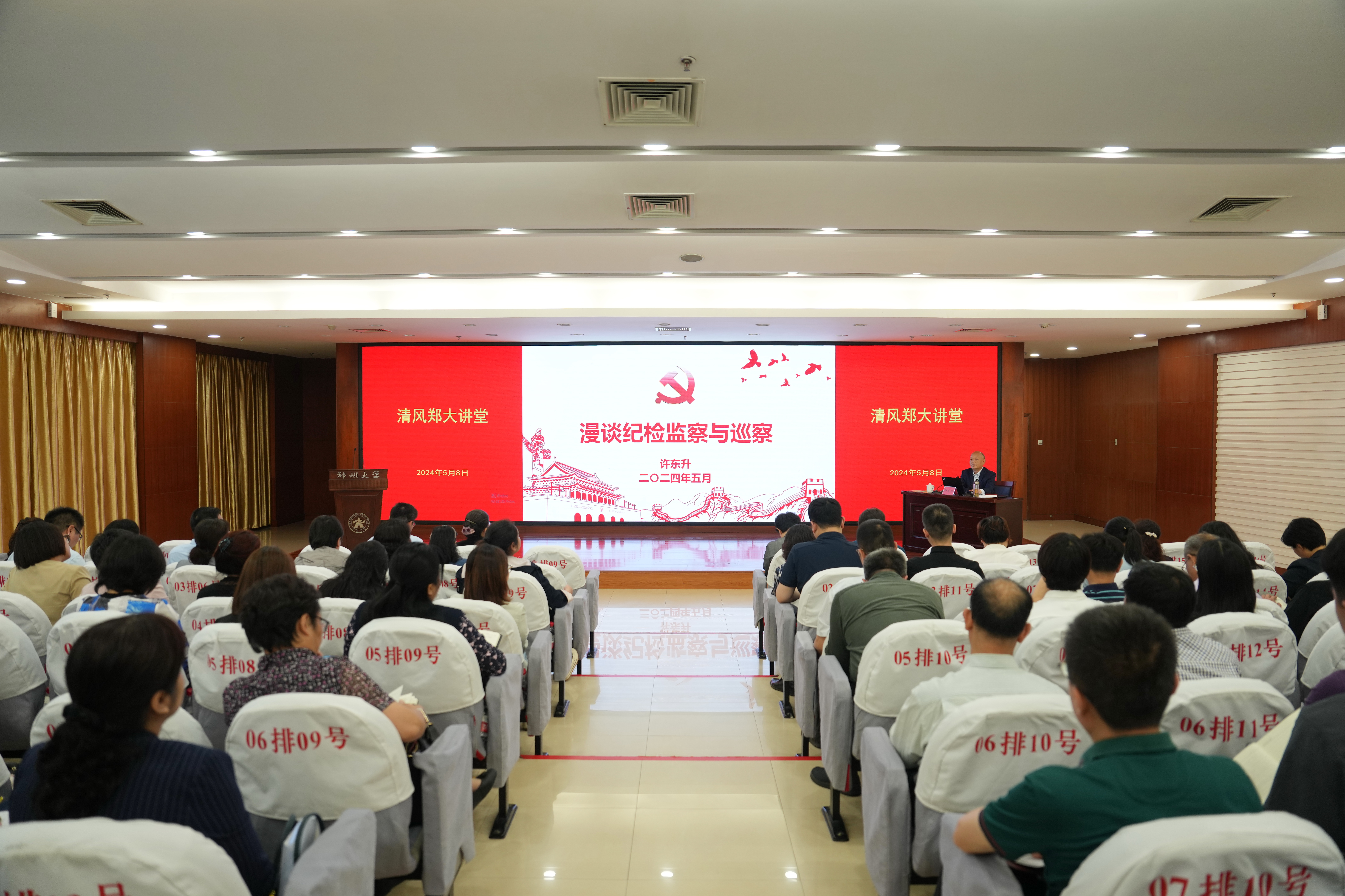 5月8日下午,校纪委、监察专员办公室在主校区举办 “清风郑大讲堂”首期讲座。会议旨在对全校纪检监察干部进行党纪学习教育和业务培训,不断提升履职能力,助推“清廉郑大”创建和一流大学建设。校党委常委、纪委书记(监察专员)许东升授课。校纪委委员,校纪委、党委巡察办全体干部,基层纪委书记(纪检委员),直属附属医院全体纪检监察同志100余人参加会议。会议由校纪委相关负责同志主持。