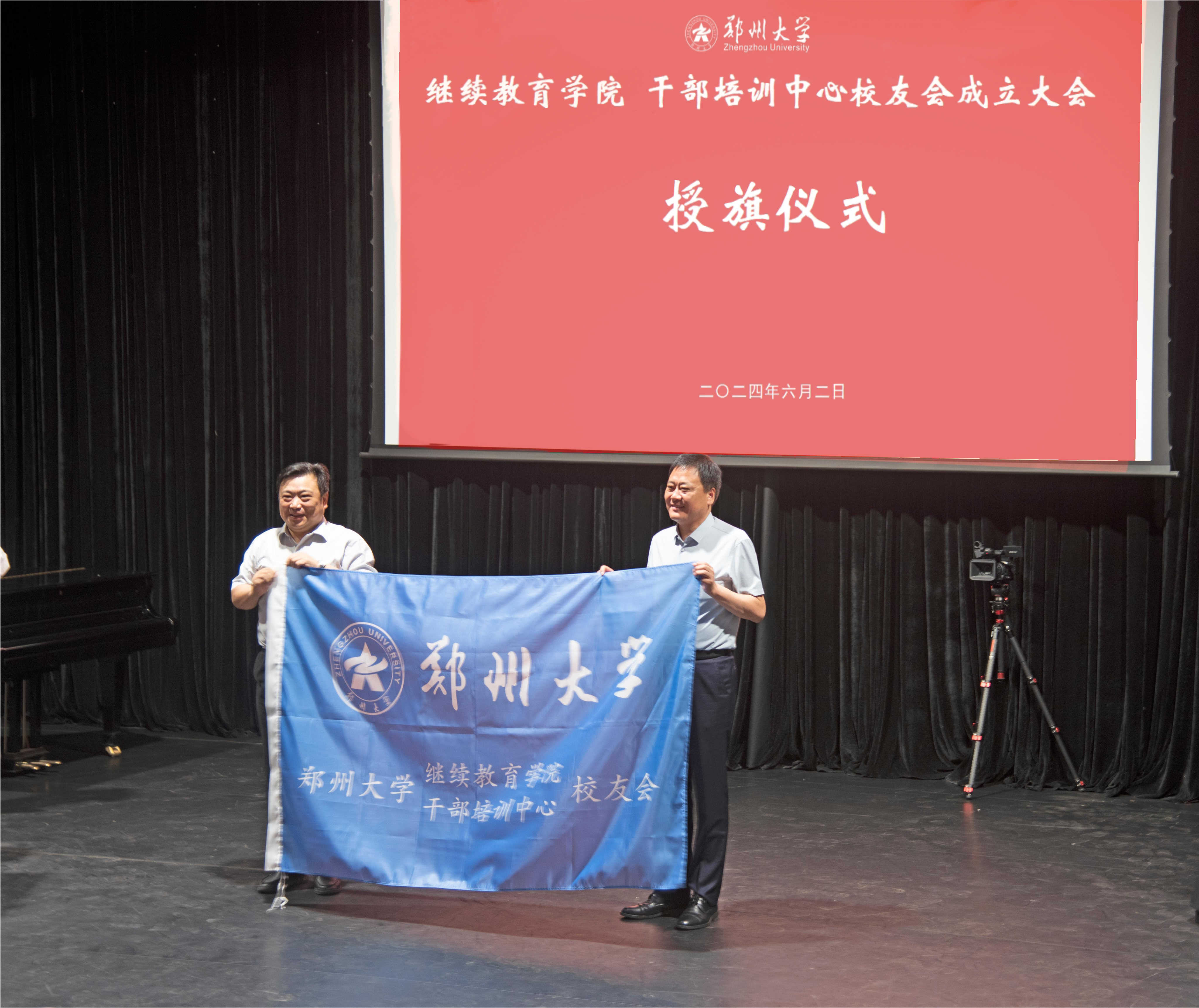 校党委常委、副校长胡少伟为继续教育学院、干部培训中心校友会授旗