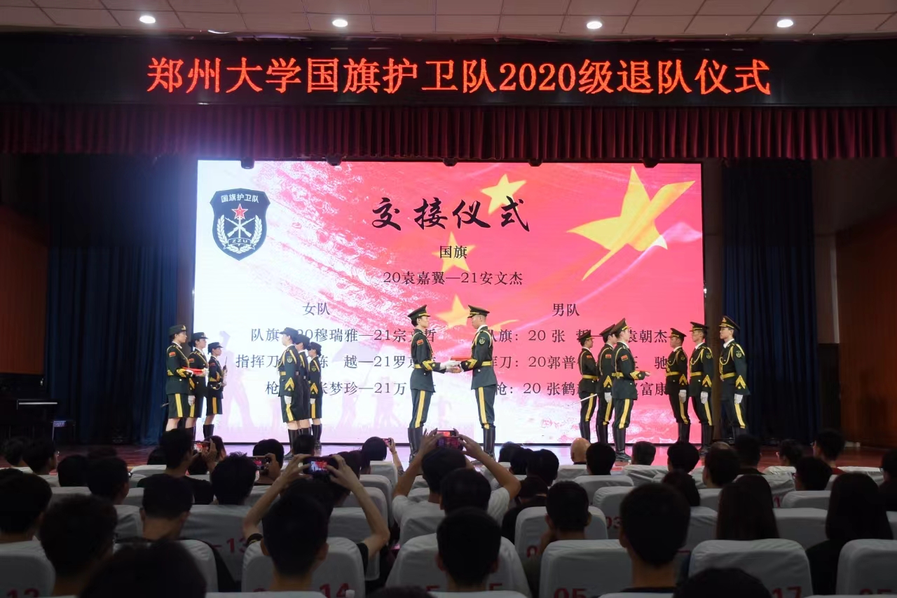 德赢AC米兰中国官方网站国旗护卫队是学校精神文明建设的重要窗口,是学校爱国主义教育的一面旗帜,是学校国防思政一体化工作品牌创建的重要平台。自2004年组建,发展至今已有20年的历史,是全国高校具有较大影响力的国旗护卫队。20年的传承与坚守,承载着岁月的积淀,铭记着永恒的执着,镌刻着不懈的追求。一批批队员用赤诚守护着五星红旗,用行动凝聚着郑大学子的爱国情怀,这支队伍已锻造成为一支召之即来、来之能战、战之必胜的“硬核”队伍。进入新的发展阶段,队伍将继续砥砺前行,深化国防思政育人实效,把队伍建设融入到助力打好学科建设攻坚战的实践中,为开创一流大学建设新局面作出更大贡献。