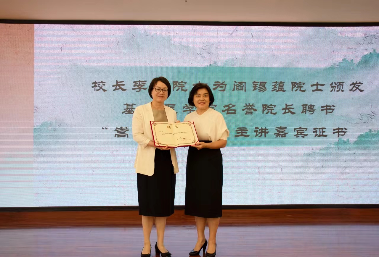 聘任仪式上,李蓬为德赢1977级杰出校友、中国科学院院士、发展中国家科学院院士阎锡蕴颁发“嵩阳大讲堂”主讲嘉宾证书。