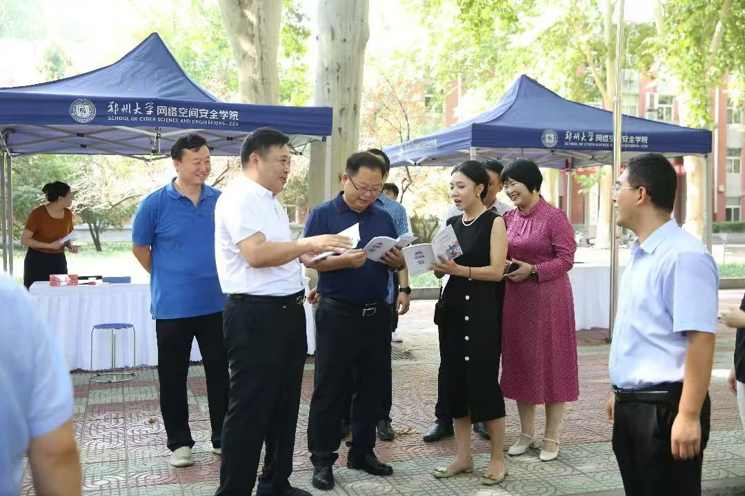 “孩子报考自己的母校,就是相信孩子在郑大能够成长为一名有‘材料’的人,为国家作贡献!”材料科学与工程学院迎来了一位24年前从郑大毕业、再次回到母校来送孩子报到的家长张贞祥,父子成“校友”。在计算机与人工智能学院、软件学院报到点,一辆无人驾驶车正在运送行李,旁边展示着无人驾驶船、四足机器人,不远处还有物理学院研发的机器狗,吸引新生和家长拍照,科技迎新既“创心”又“赢心”。报到当天恰逢三名新生生日,化工学院精心准备了生日蛋糕,现场师生一起切蛋糕为他们庆生,气氛热烈而喜庆。网络空间安全学院制作学院介绍、学科建设、党建工作等20余块迎新展板,印发400份迎新手册,促进新生和家长全面了解学院情况。生命科学学院设计新生“签字墙”,利用卡片、毛线等工具巧妙组合成生物元素——DNA双螺旋图形,展现专业特色和学科魅力。
