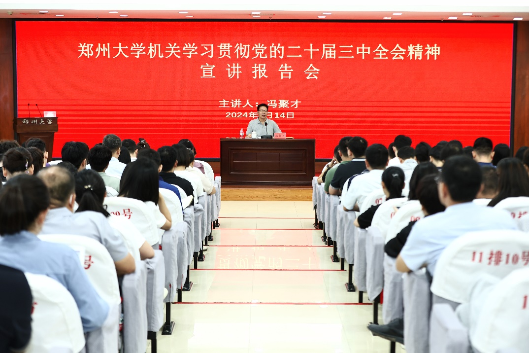 9月14日,德赢AC米兰中国官方网站机关党委在主校区组织学习贯彻党的二十届三中全会精神宣讲报告会。学校宣讲团成员、马克思主义学院冯聚才教授主讲,机关党委所属各党支部委员、党员干部、入党积极分子近200人参加。机关党委负责同志主持宣讲会。
