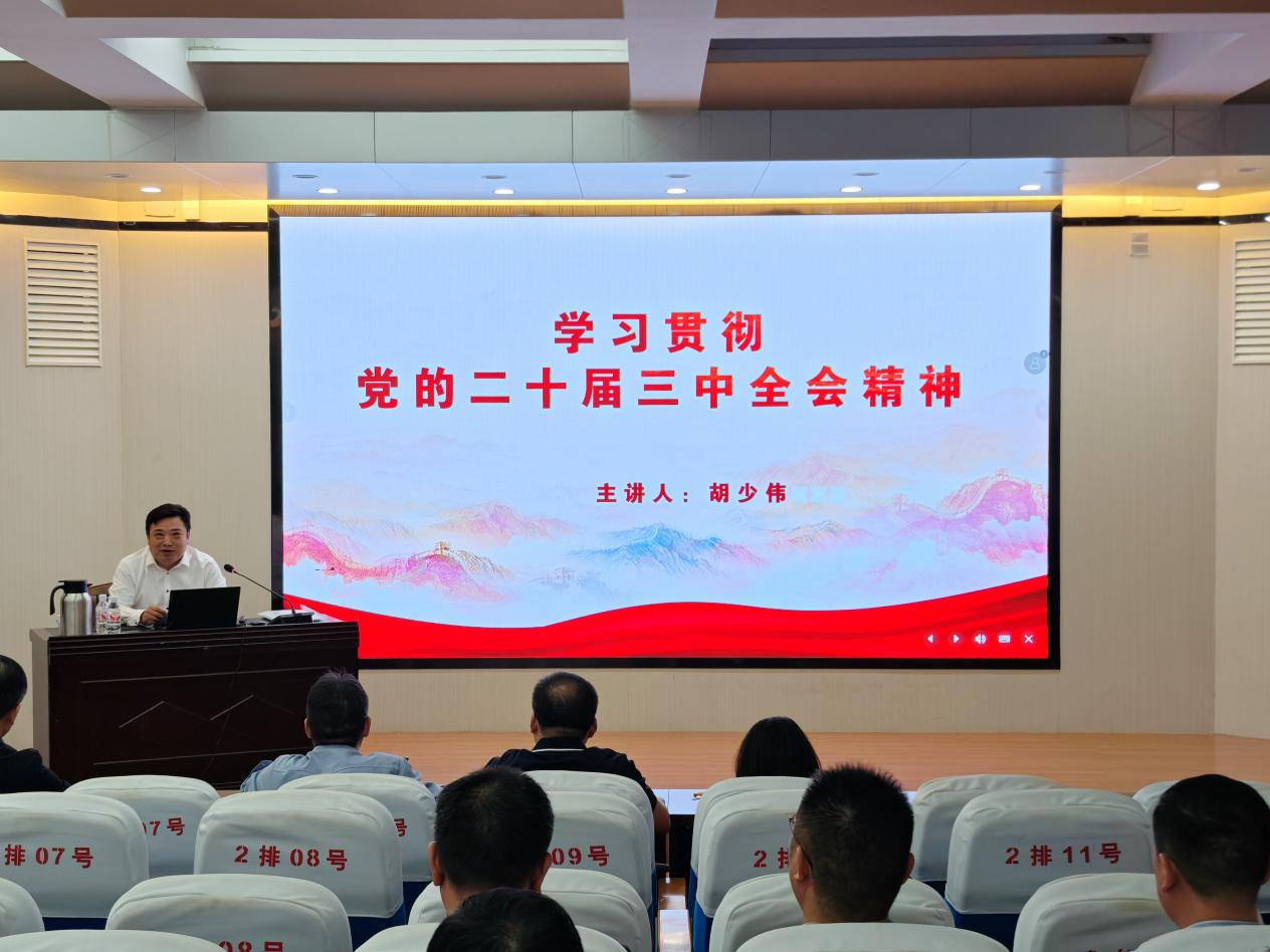 为深入学习贯彻党的二十届三中全会精神,进一步提升师生的政治站位和思想认识。9月24日,校党委常委、副校长胡少伟深入水利与交通学院,为学院师生作“学习贯彻党的二十届三中全会精神”的专题宣讲。水利与交通学院负责同志主持宣讲报告会。