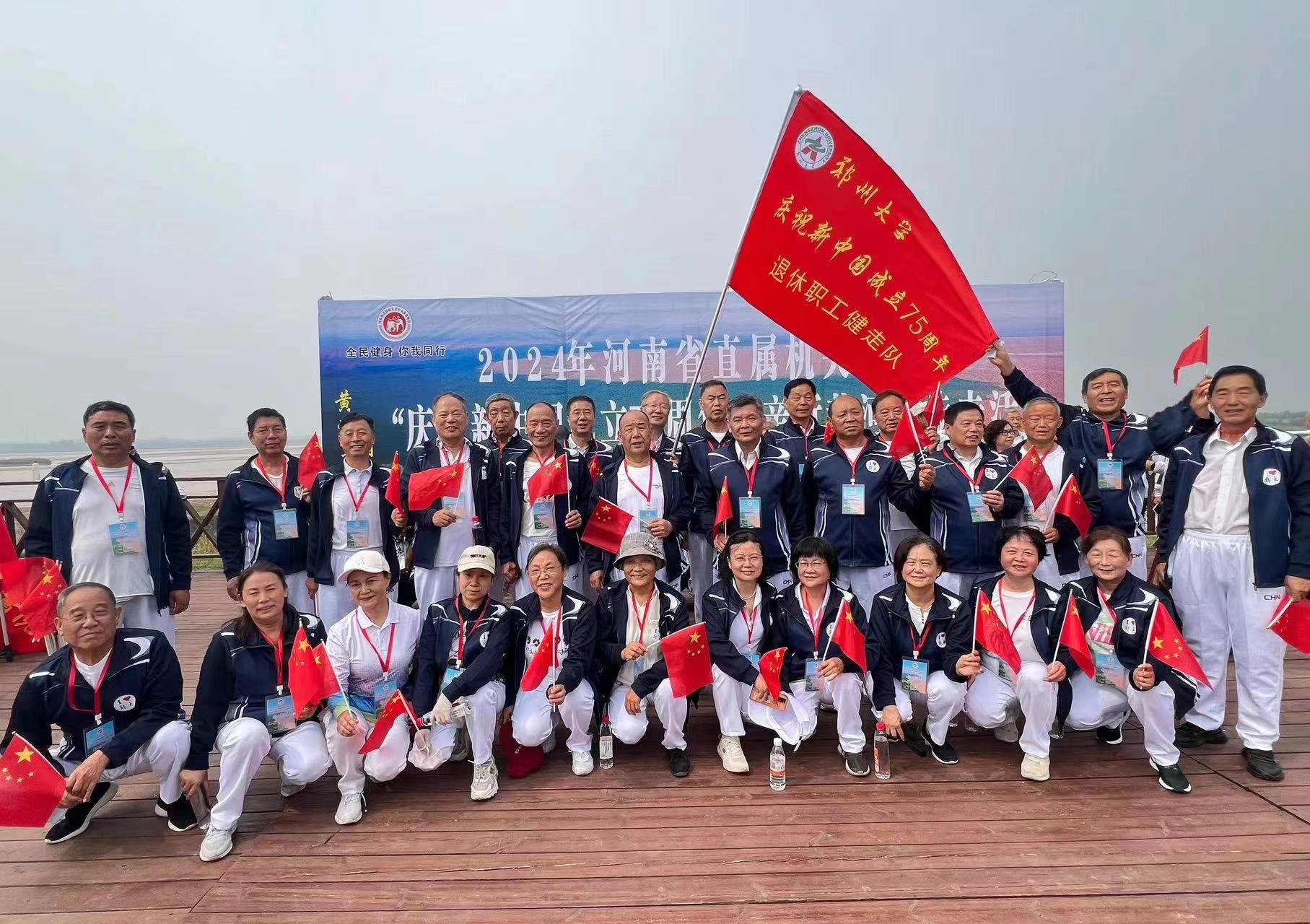 为庆祝中华人民共和国成立75周年,深入贯彻党的二十大和二十届三中全会精神,认真落实“做好离退休干部工作”的要求,丰富德赢离退休职工精神文化生活,9月26日,学校组织30余位退休教职工代表参加了中共河南省委老干部局、河南省体育局举办的2024年省直机关老年人“庆祝新中国成立75周年”亲近黄河健步走活动,并荣获“优秀组织奖”。