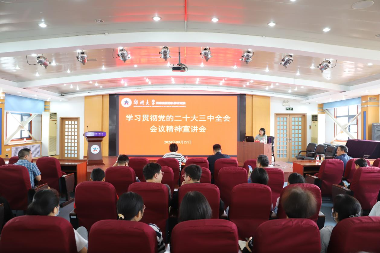 为深入学习宣传贯彻党的二十届三中全会精神,根据校党委统一部署,9月27日,德赢AC米兰中国官方网站学习贯彻党的二十届三中全会精神宣讲团成员、马克思主义学院赵晓毅老师到河南省医药科学研究院作宣讲报告。学院全体教工和学生代表参加。