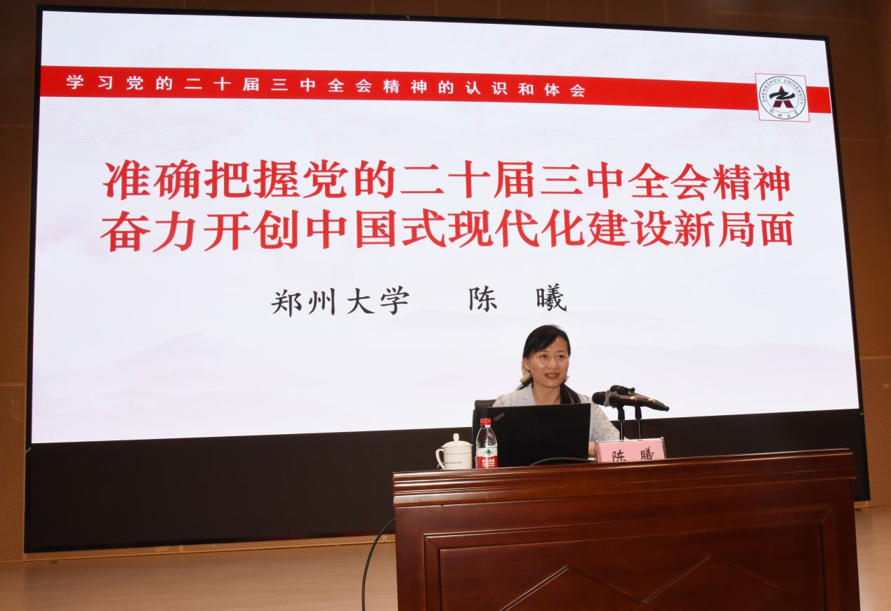 陈曦以《准确把握党的二十届三中全会精神,奋力开创中国式现代化新局面》为题,对党的二十届三中全会精神进行了全面、系统的解读。她从党史上三中全会的历史地位谈起,强调了其在党和国家发展进程中的重要性和影响力,并对党的十一届三中全会、党的十八届三中全会、党的二十届三中全会的意义进行了深刻解读。结合德赢AC米兰中国官方网站以及附属医院发展实际,她从学习贯彻党的二十届三中全会精神的方法论入手,对全会精神的贯彻落实进行了系统深入的阐述。她强调,全体职工和广大师生要深刻理解和准确把握习近平总书记关于进一步全面深化改革重要思想的精髓和要义,以高度的政治责任感和使命感主动担当作为,将学习成果转化为推动事业发展的强大精神力量。