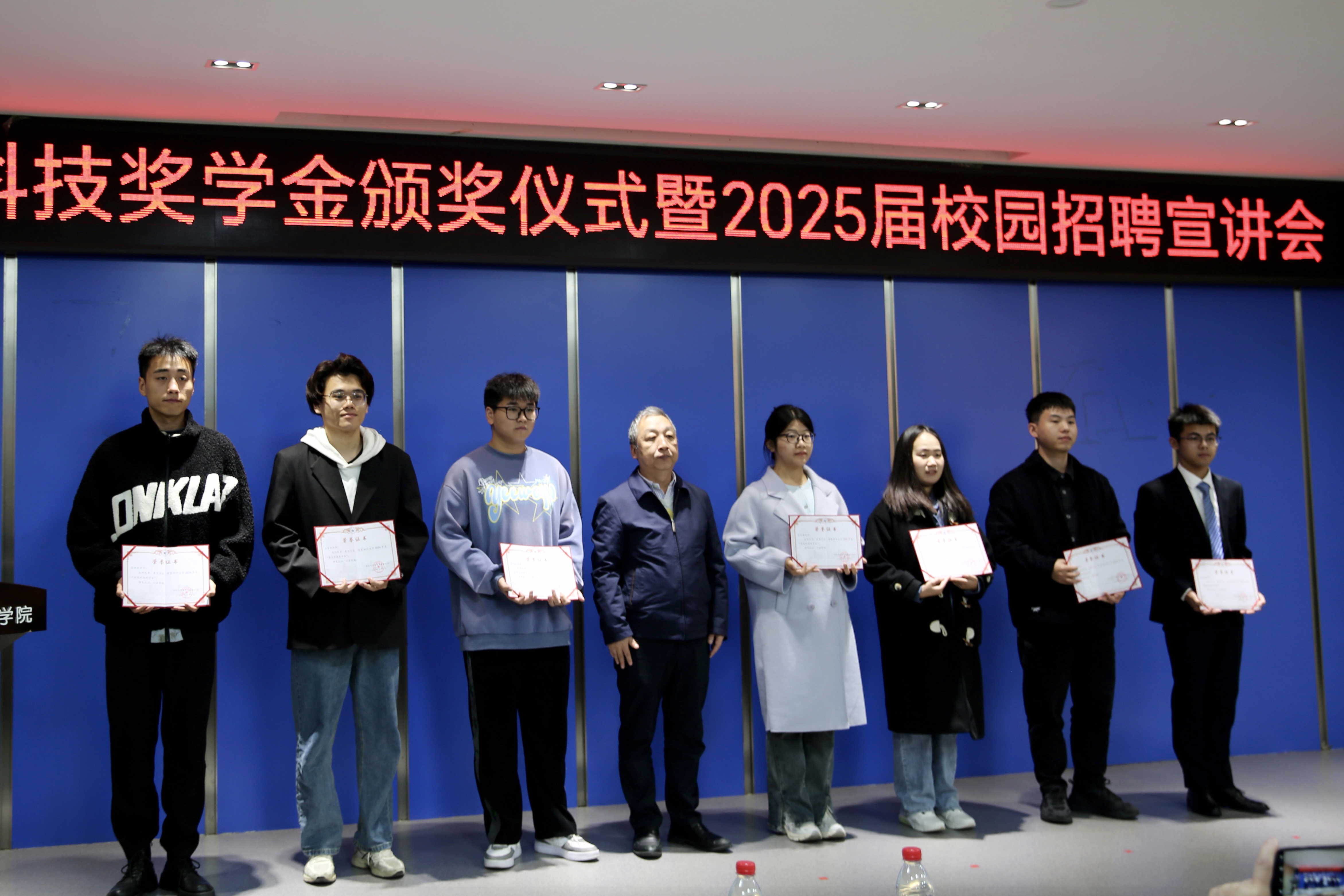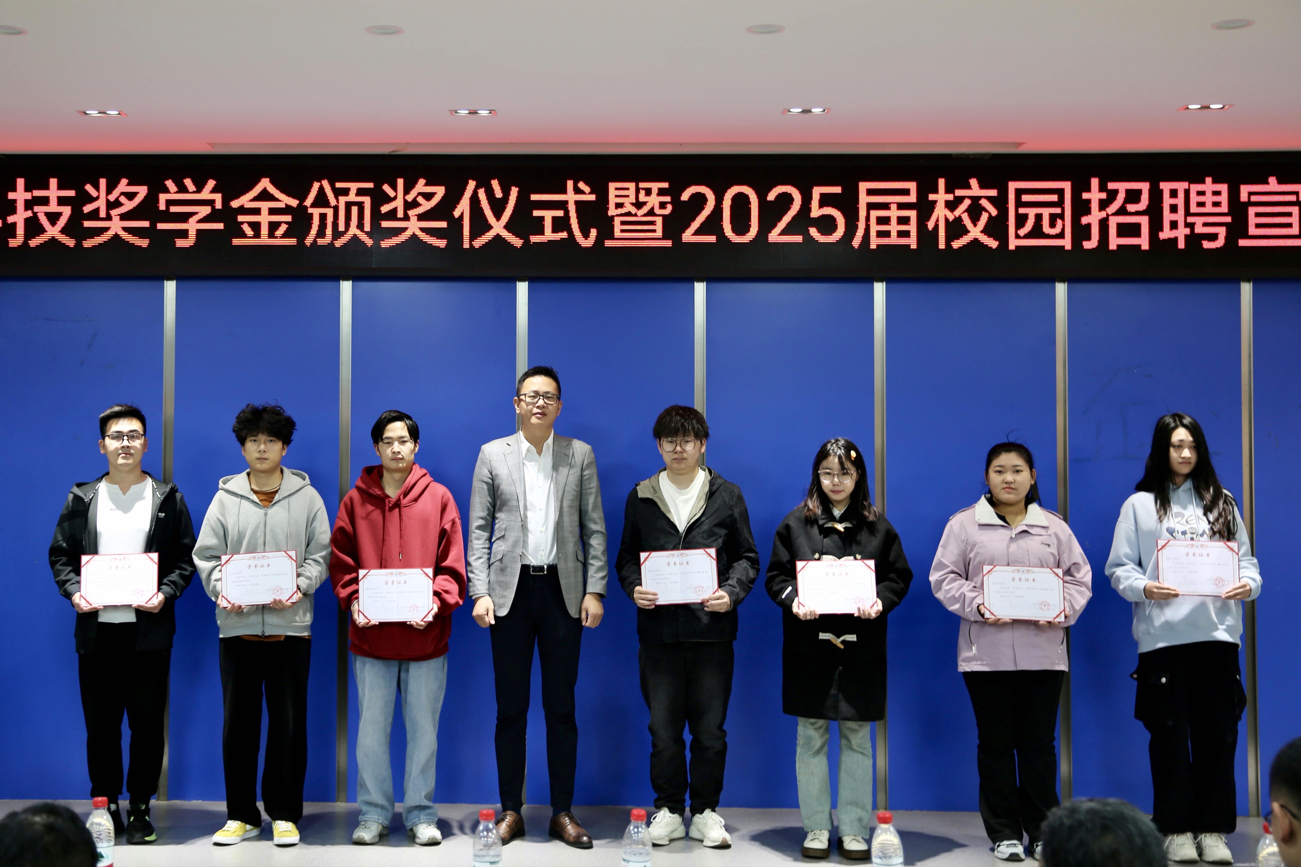 颁奖仪式上,与会领导嘉宾为获奖学生代表颁发荣誉证书。仪式后,金发科技股份有限公司开展了2025届校园招聘宣讲会。(赵书乐 供稿 杜欣欣 摄影)