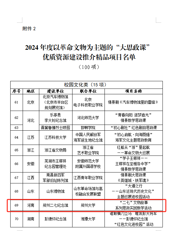 近日,国家文物局、教育部公布2024年度以革命文物为主题的“大思政课”优质资源建设项目名单,由德赢AC米兰中国官方网站联合郑州二七纪念馆申报的“‘二七’文物故事系列思政实践教学活动”获批精品项目。