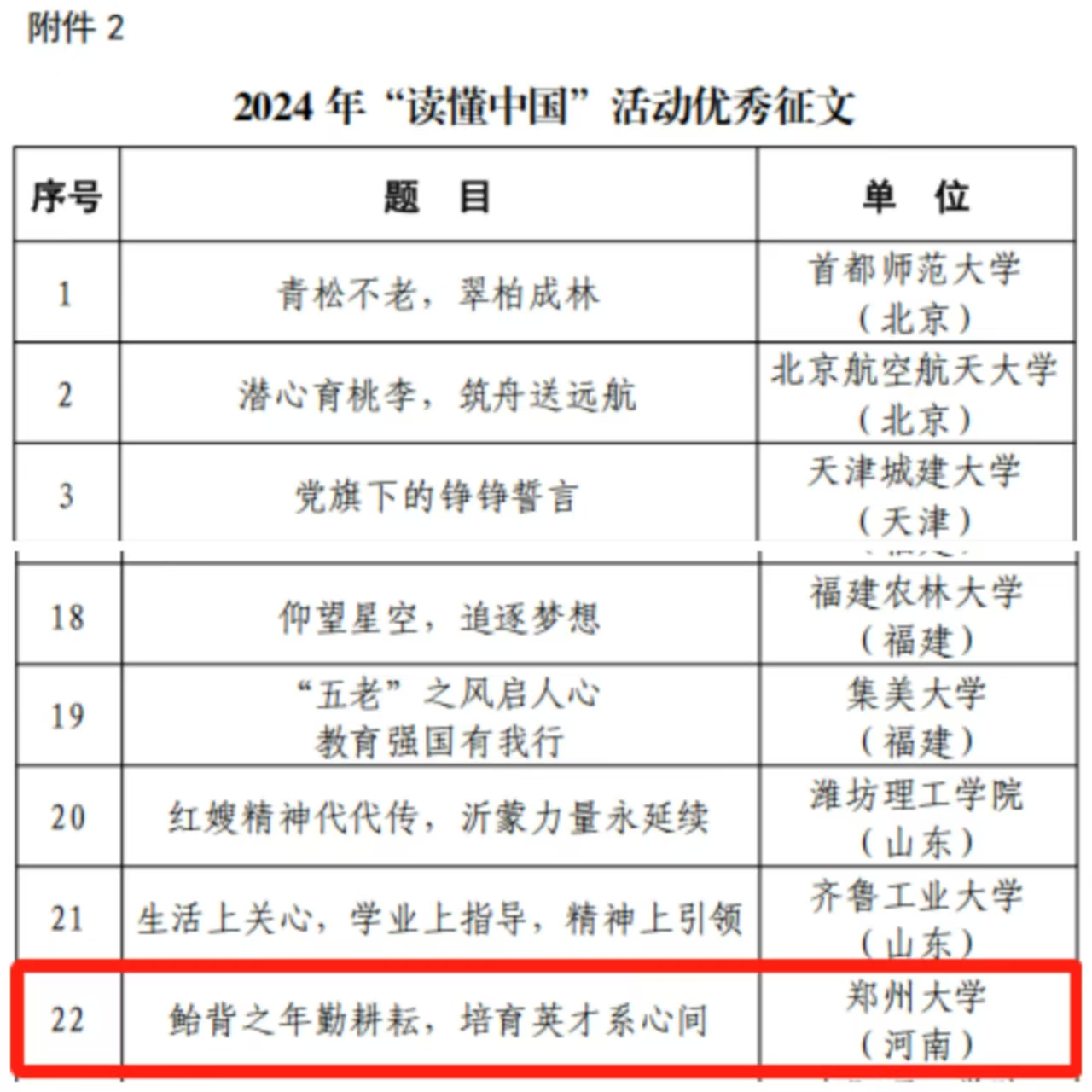 近日,教育部关心下一代工作委员会发布了《教育部关工委关于公布2024年“读懂中国”活动入选作品名单的通知》。德赢AC米兰中国官方网站报送的《鲐背之年勤耕耘,培育英才系心间》作品荣获优秀征文奖,校关工委获评为受表扬单位。