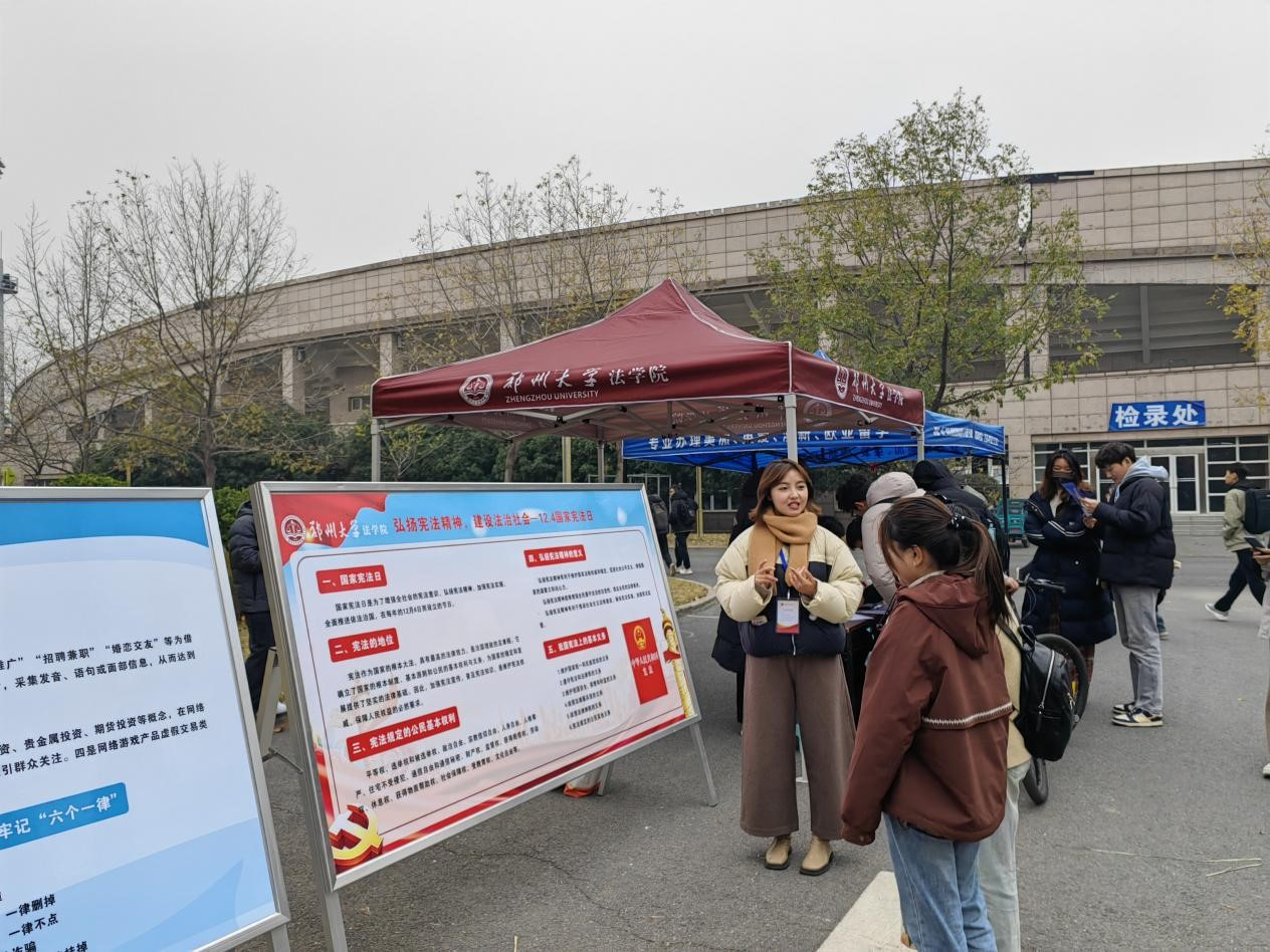 法学院组织开展宪法宣传外展活动,通过通俗易懂、生动有趣的形式,普及“国家宪法日”由来和《中华人民共和国宪法》基本内容,深化学校师生对宪法和社会主义法治体系的理解认识。