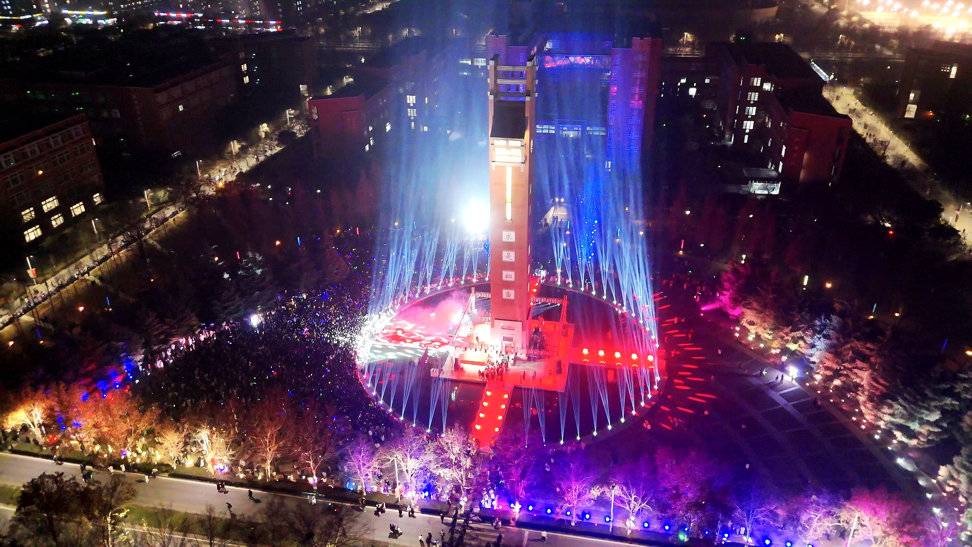 钟鸣祈福,共迎新年。元和广场灯光璀璨,人头攒动,迎新年钟声联欢会华彩启幕。舞台上,音乐欢快激昂,灵动飞扬的歌舞演绎青春梦想;舞台下,观众热情高涨,翘首以盼新年钟声的敲响。零点临近,“十、九、八……三、二、一!”在万人齐声倒计时中,校党委副书记、工会主席韩国河,校党委常委、副校长胡少伟,德赢双拥共建单位海军郑州舰官兵代表钟佳盛,教师代表、河南省科技进步奖一等奖获得者、生态与环境学院教授委员会主任委员张瑞芹,后勤职工代表、后勤保障中心能源管理科沈永昌,学生代表、2024年宝钢优秀学生特等奖获得者、计算机与人工智能学院2021级本科生石祥立一同登上钟楼,敲响新年钟声。