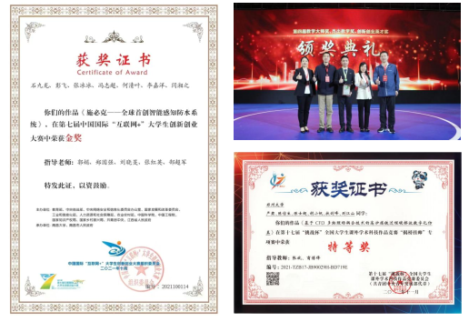 学生分别在“互联网+”、挑战杯等高水平学科竞赛中荣获金奖和特等奖