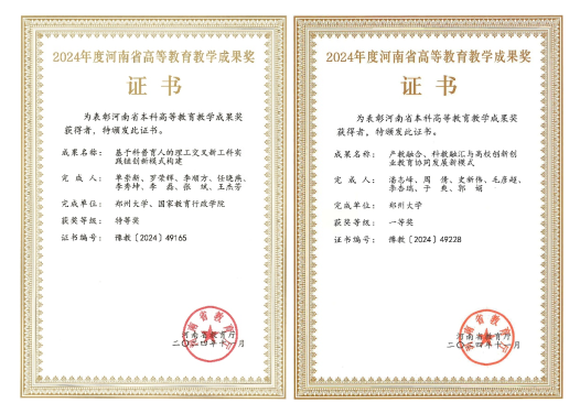2024年度荣获河南省高等教育教学成果奖特等奖1项、一等奖1项