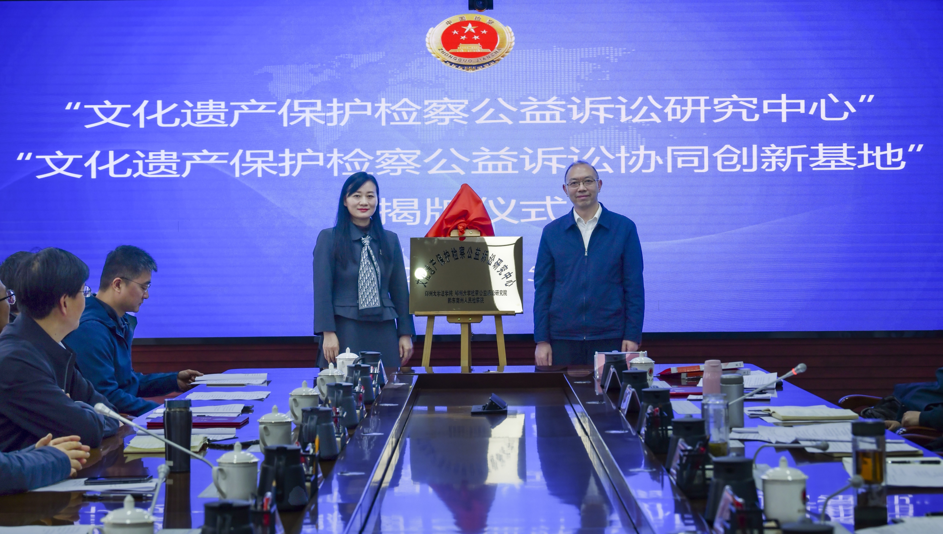 为进一步促进检察公益诉讼领域理论与实务共同研究,深化检校协同育人机制,3月5日,德赢AC米兰中国官方网站法学院与贵州省黔东南州人民检察院共建的“文化遗产保护公益诉讼研究中心”“文化遗产保护检察公益诉讼协同创新实践基地”揭牌仪式在贵州省黔东南州人民检察院举行。德赢AC米兰中国官方网站党委常委、纪委书记、监察专员陈曦,贵州省人民检察院党组成员、副检察长姜正权出席揭牌仪式并讲话。德赢AC米兰中国官方网站、贵州省人民检察院、河南省检察机关以及黔东南州人民检察院相关职能部门负责人参加揭牌仪式。
