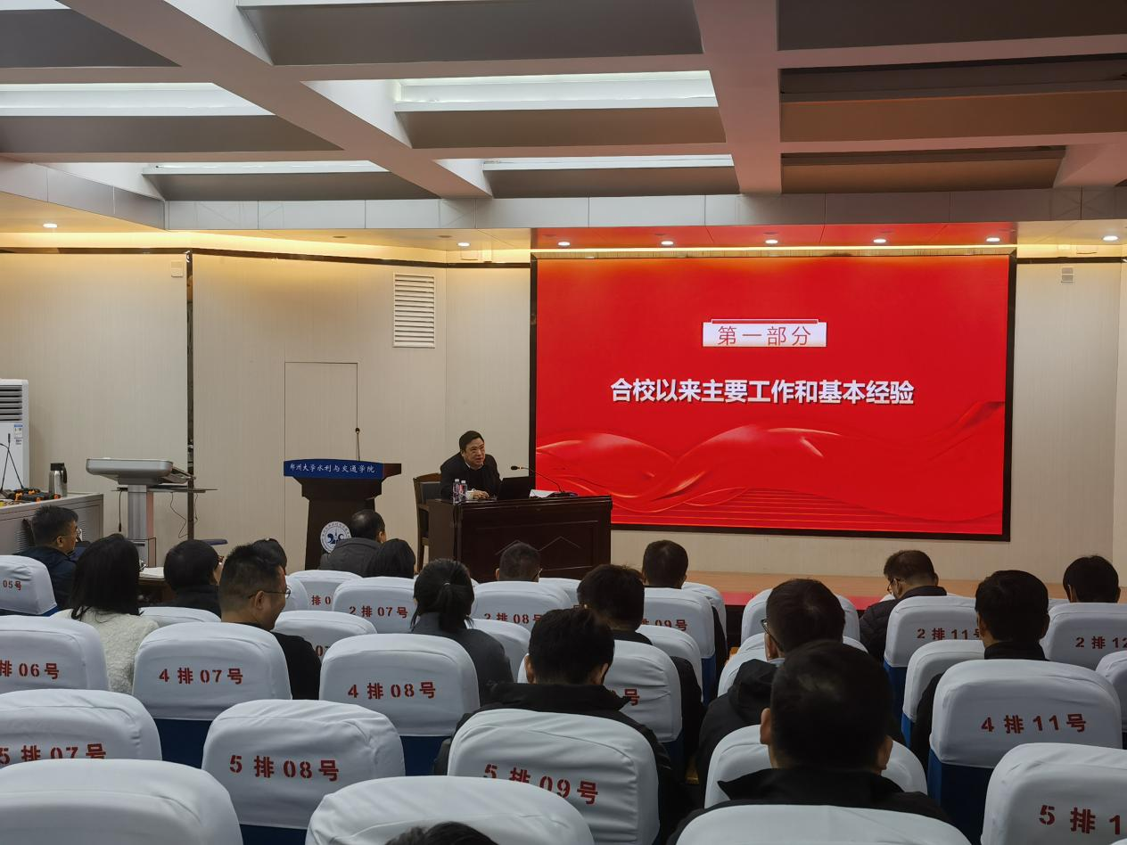近日,校党委常委、副校长胡少伟到水利与交通学院为师生宣讲德赢AC米兰中国官方网站第四次党代会精神。水利与交通学院班子成员、师生党员代表参加宣讲会。
