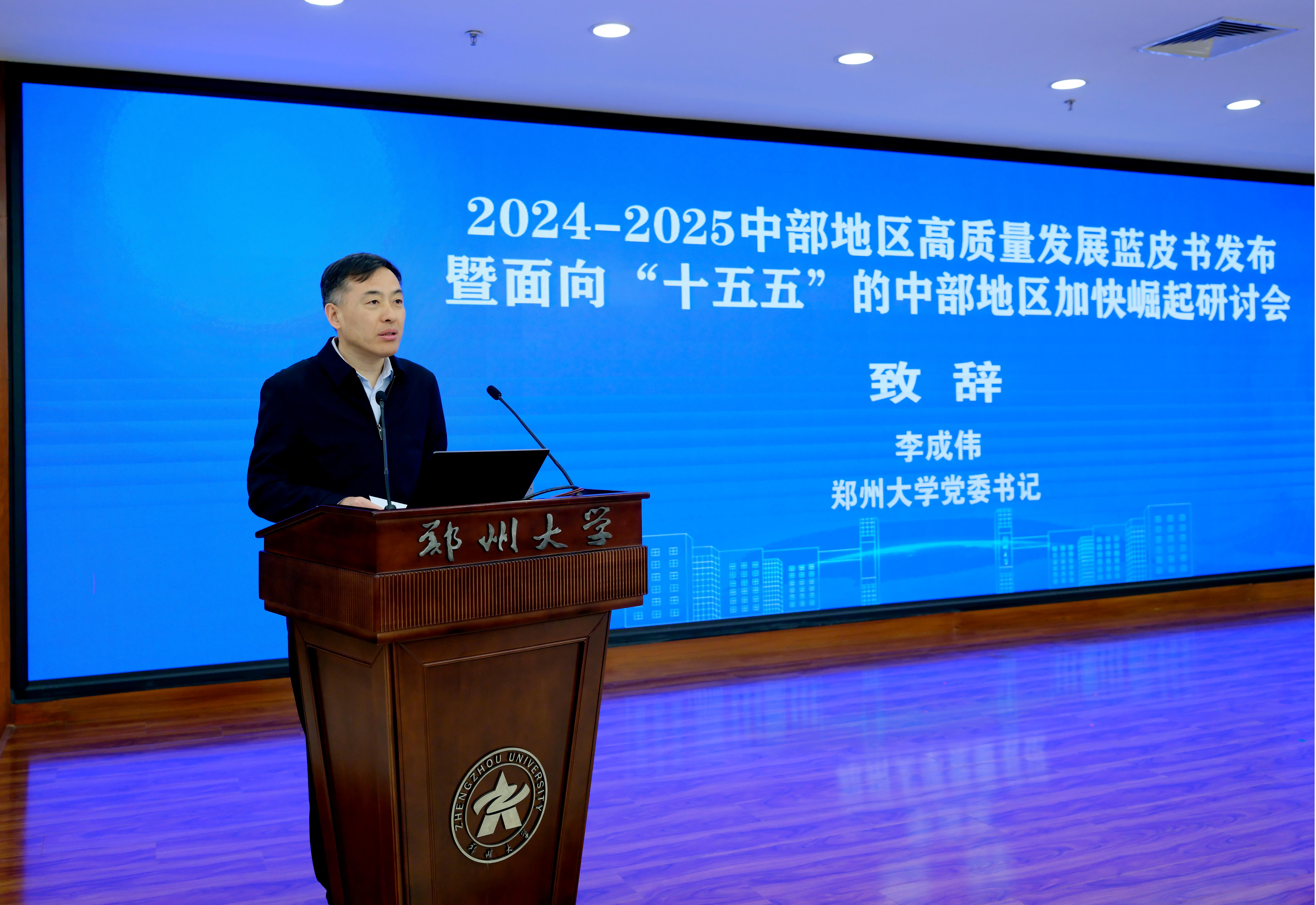 李成伟在致辞中对各位领导、专家的到来表示欢迎。他指出,中部地区作为全国粮食安全、能源原材料、现代产业和综合交通枢纽的核心承载区,长期以来为全国经济社会发展作出了重大贡献。此次发布的蓝皮书是德赢AC米兰中国官方网站联合中部六省多家高校、科研院所共同打造的最新研究成果,是对中部地区高质量发展的一次全面总结,更是对未来发展的科学规划和展望。希望各位专家学者能够以本次会议为契机,强化学术交流与合作,打造推动中部崛起的学术共同体,凝聚发展合力,在中国式现代化建设中奋力谱写中部地区崛起新篇章。