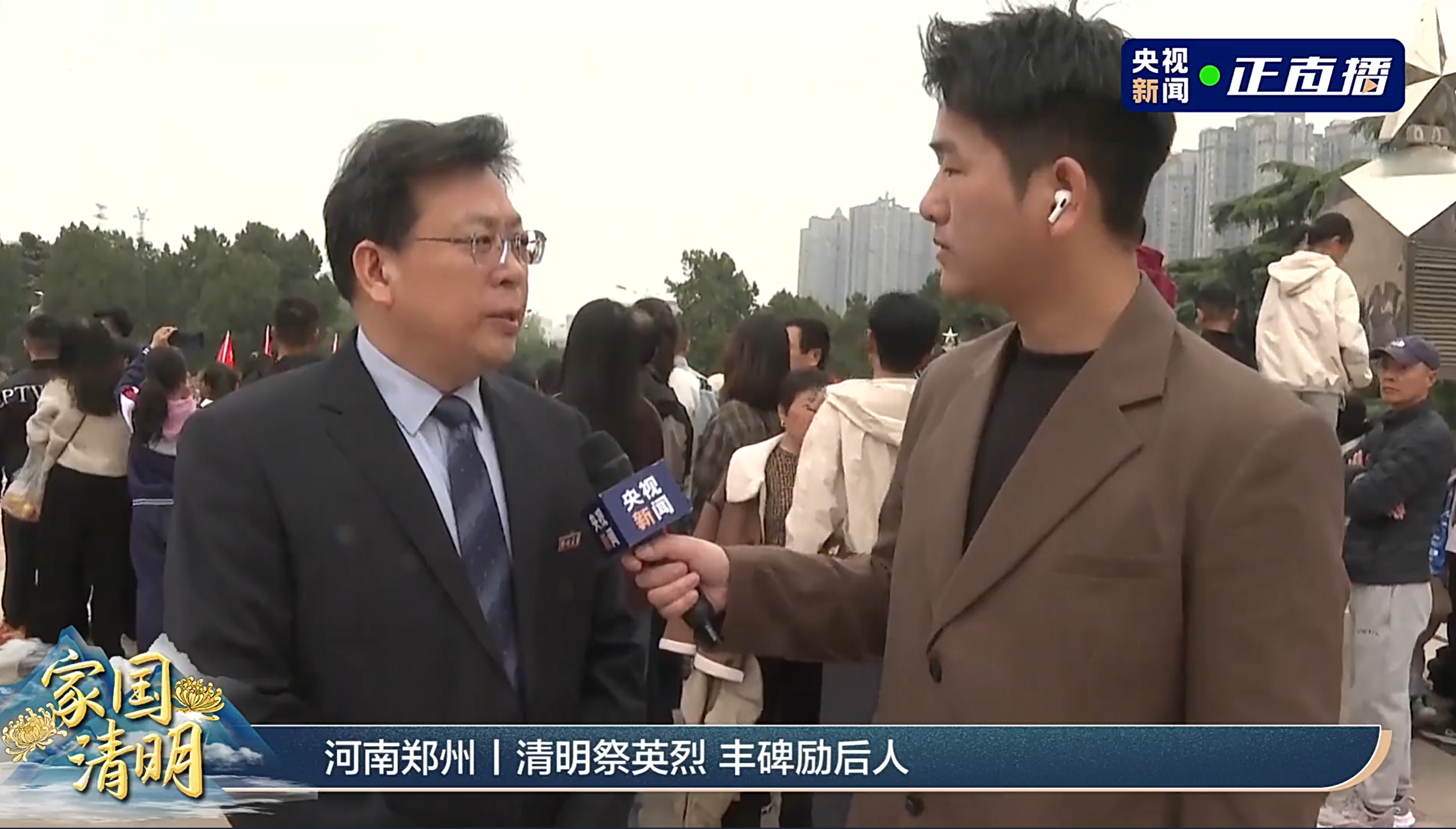 王利国在活动现场接受采访时指出,20余年来,郑大国旗护卫队坚持每年组织400余名队员徒步参与清明祭扫,以脚步丈量信仰之路、淬炼精神品格,成为“行走的思政课”创新范本。今年是抗日战争胜利80周年,这场沉浸式教育实践有机融合国防教育、校史传承和党史学习,更显历史意义和时代价值,体现了思政教育从课堂走向现实的生动实践。学校将持续深化国防教育与思政教育协同创新,通过构建校军地协同育人体系,形成“实践—理论—内化”育人闭环,引导青年学生将革命薪火与百年郑大精神熔铸为“求是 担当”的青春实践,用铿锵足音回应“强国有我”的时代召唤,在全面建设社会主义现代化国家新征程中书写青春华章。