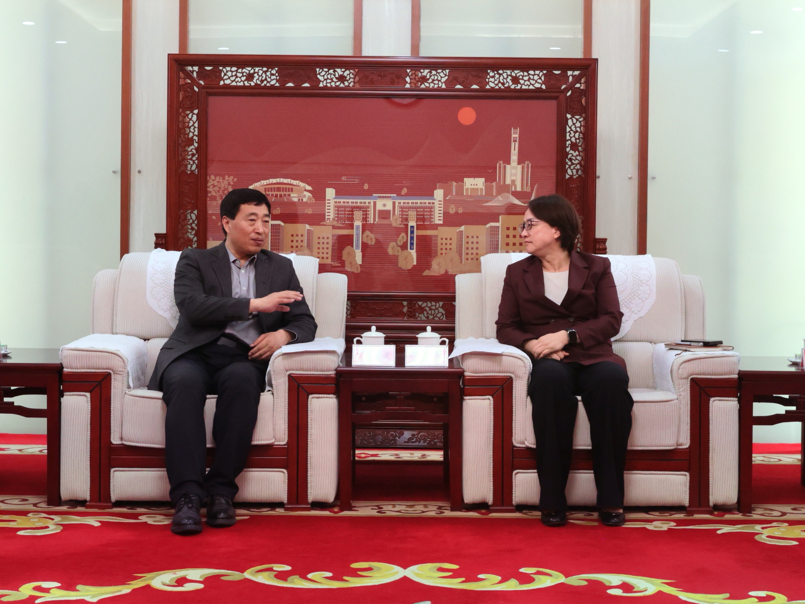 李蓬对刘培俊一行莅临指导表示欢迎,向教育部语言文字信息管理司长期以来对学校的有力支持与深切关怀表示感谢。她指出,河南是中华文明的重要发祥地,汉字是河南的文化名片。德赢AC米兰中国官方网站长期深耕汉字文明领域,并在教育部语言文字信息管理司、河南省教育厅的大力支持下,成功获批建设国家语委科研基地中华汉字文明研究中心,入选“古文字与中华文明传承发展工程”协同攻关创新平台组成单位,在重大项目、科研成果、人才培养等方面获得突出进展。她表示,中华汉字文化园建设是教育部、河南省赋予德赢AC米兰中国官方网站的重大使命,也是学校“十五五”乃至更长时期的重点任务,学校将汇聚校内外优质资源,努力将中华汉字文化园打造成为河南的新名片、郑州的打卡地。她强调,要以承办中国国际大学生创新大赛的契机,面向全球宣传中华汉字文化,展示中华传统文化的独特魅力和国际影响力。