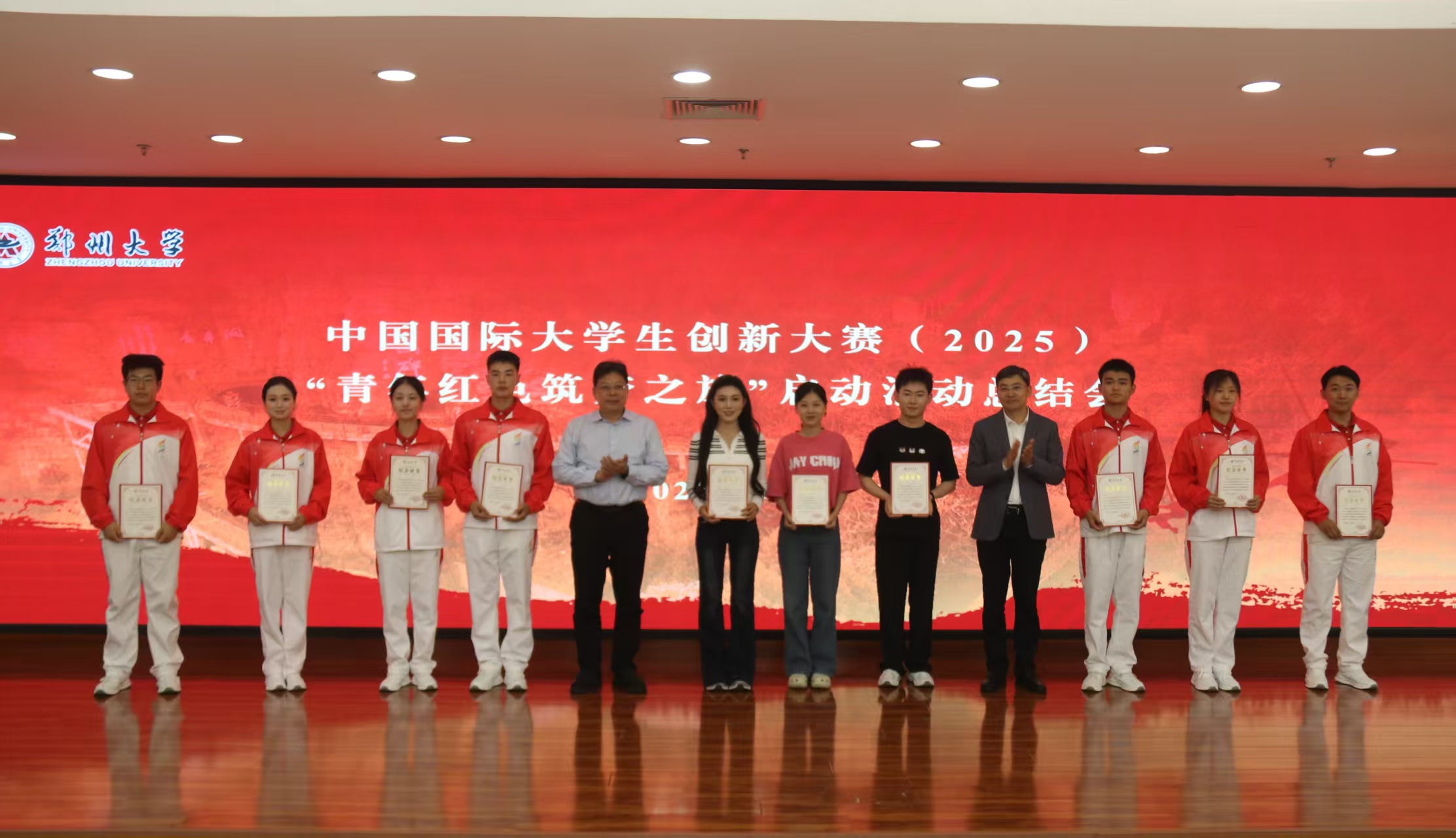 王利国作总结讲话。他强调,本次活动的成功举办,离不开各级领导、相关单位的鼎力支持以及全体工作人员的倾情投入。教育部全程指导,从方案设计到流程优化深度参与;省委省政府、省教育厅统筹调度破解难题,安阳市及林州市在活动场地、安全、后勤等方面强有力保障;校领导靠前指挥,主要领导亲自挂帅,多部门协同作战,从创意策划到执行落地彰显郑大担当;师生志愿者以行动诠释奉献担当,点滴微光汇聚成炬,共同点亮了这场备受瞩目的红色盛会。他指出,本次活动实现了教育性、实践性、创新性的有机统一,是一堂生动的中国金课和思政大课。他对与会学生提出三点希望:一是传承红色精神,投身学习实践;二是激发创新动能,积极备战国赛;三是扛牢使命担当,奉献祖国发展。他号召学校全体师生以此次“红旅”总结会为起点,以饱满的热情投入后续工作,为中国国际大学生创新大赛(2025)的成功举办,为学校“双一流”建设发展添砖加瓦、再立新功。
