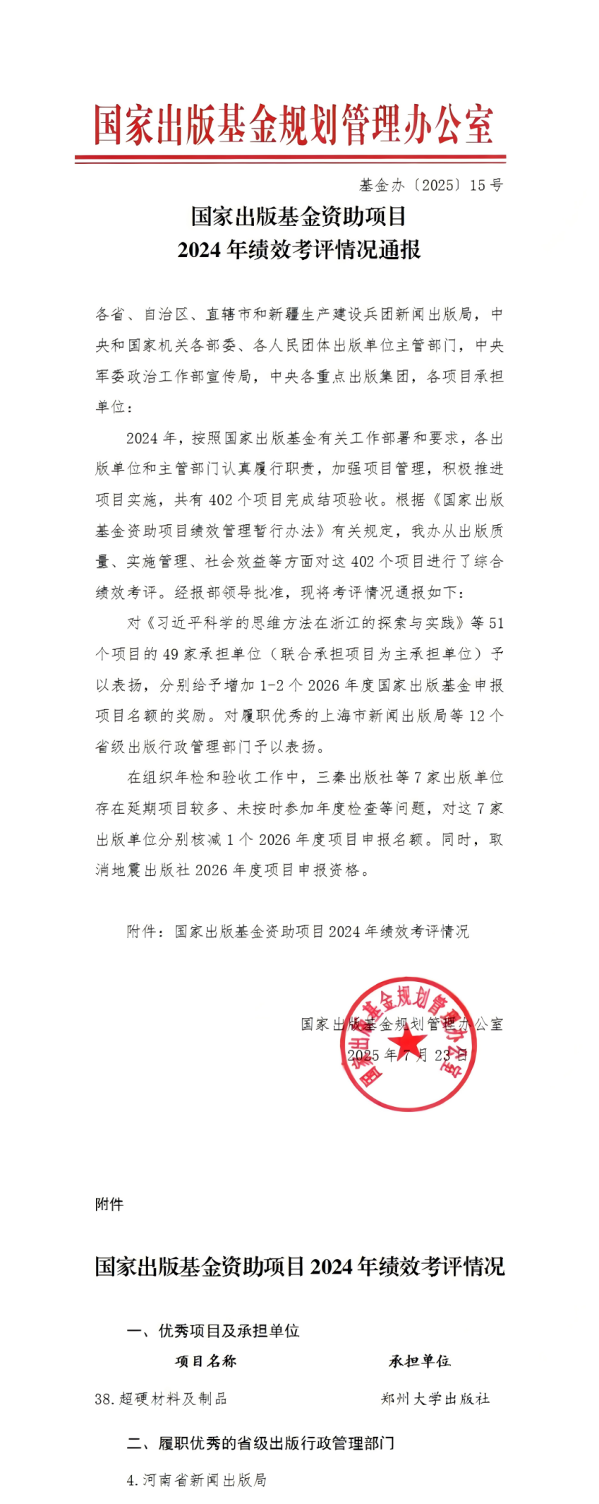 近日,国家出版基金规划管理办公室发布《国家出版基金资助项目2024年绩效考评情况通报》,公布了国家出版基金2024年结项考评优秀及实施不力的项目和单位。全国共有51个出版基金项目(49家承办单位)被评为“优秀”等次。继2023年被通报表扬之后,德赢AC米兰中国官方网站出版社的出版项目今年再次上榜,获得考评优秀等次,并奖励1-2个2026年度国家出版基金申报项目名额。