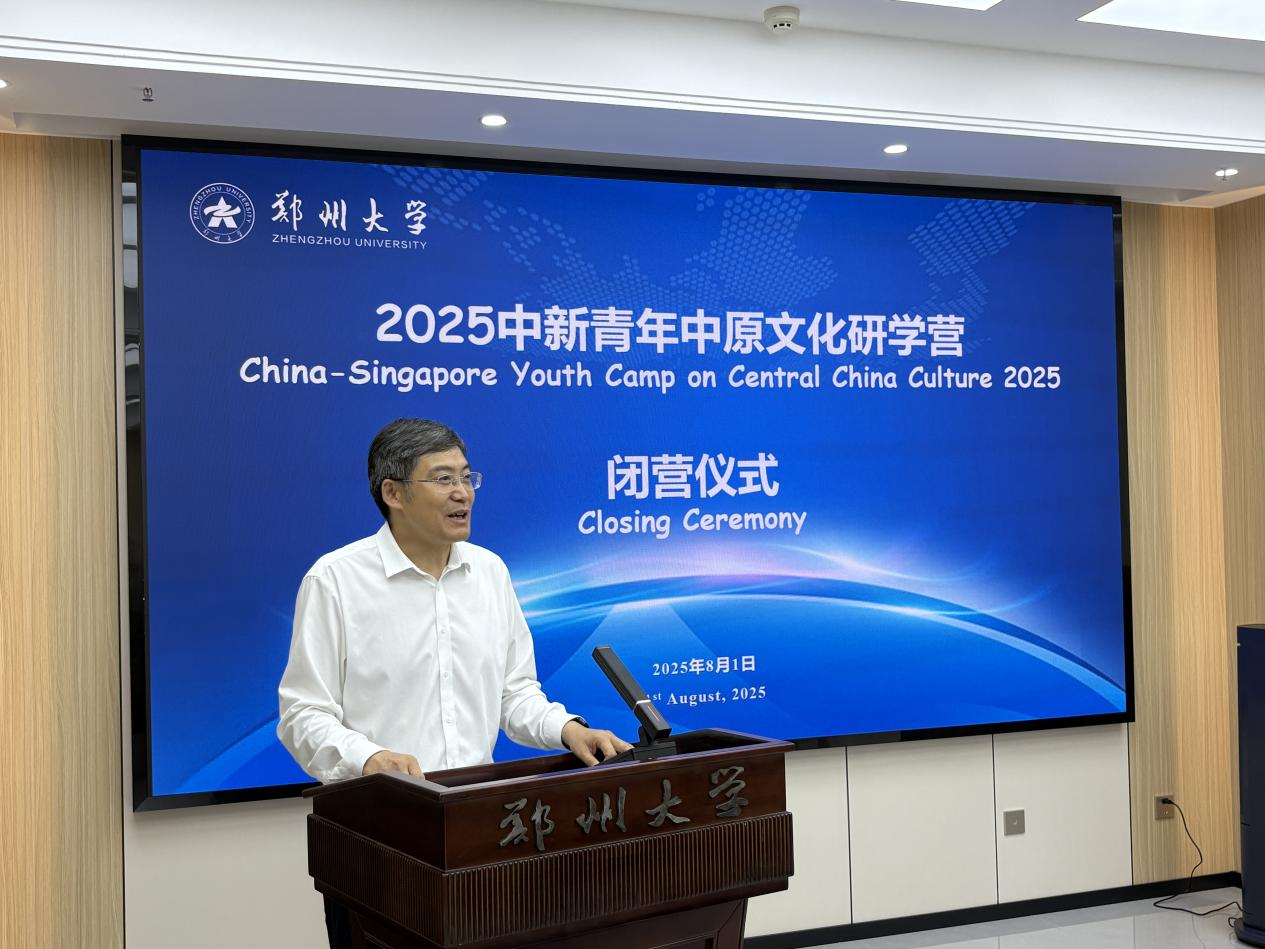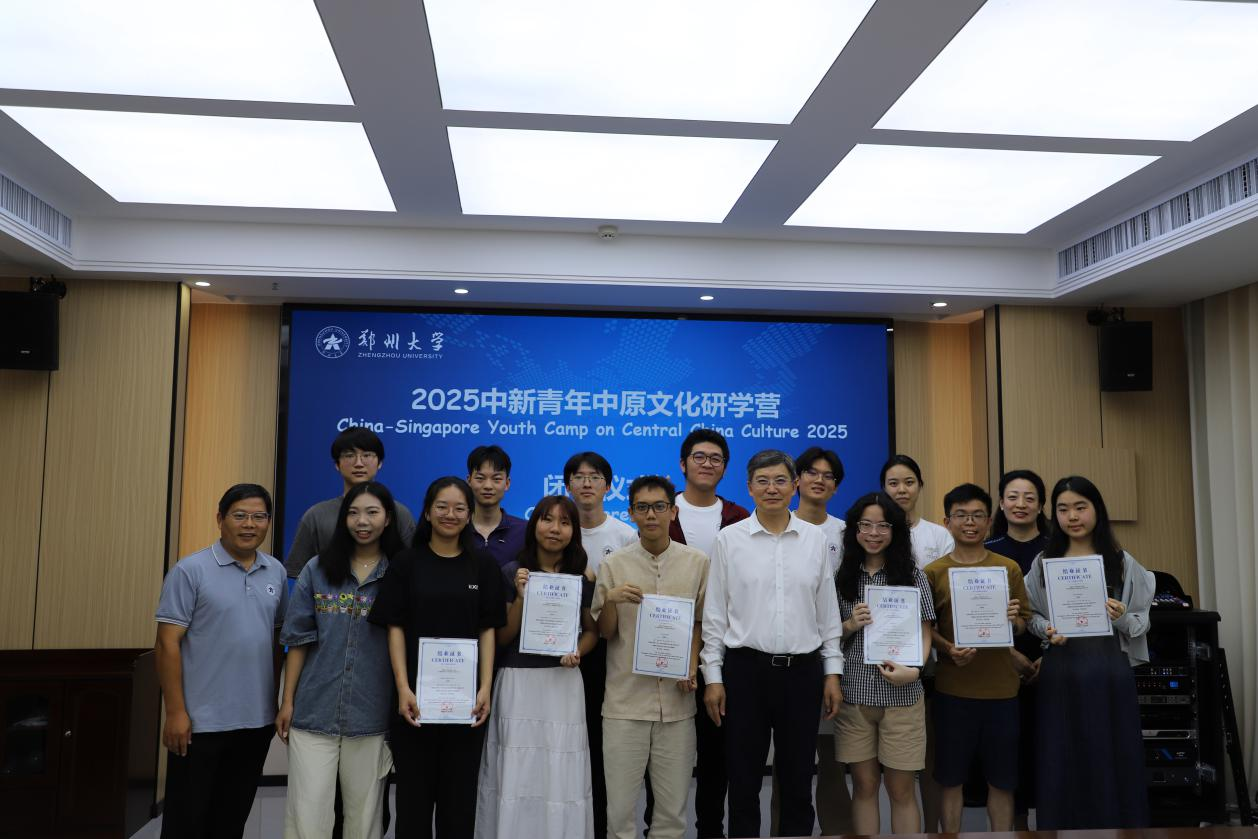 近日,2025中新青年中原文化研学营闭营仪式在德赢AC米兰中国官方网站主校区举行。德赢AC米兰中国官方网站党委常委、副校长王海杰出席仪式,并为来自新加坡国立大学的9名学生颁发结业证书。德赢AC米兰中国官方网站学生代表以及国际交流与合作处相关负责同志参加仪式。