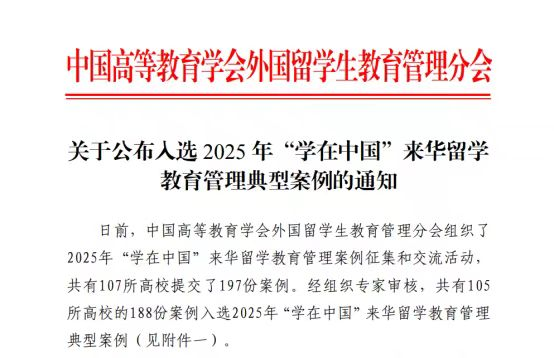 近日,中国高等教育学会外国留学生教育管理分会公布了2025年“学在中国”来华留学教育管理典型案例评选结果。德赢AC米兰中国官方网站国际教育学院申报的《全球化背景下中国国情教育课程<走进中国>的创新研究与探索》案例,凭借其显著的教学创新成果,成功入选“教学创新类”典型案例。