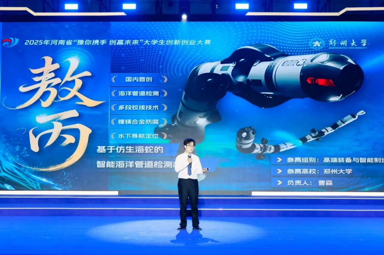 经过校内初赛、省级复赛等多轮选拔,435个项目晋级省赛决赛,其中133个项目分获金、银、铜奖。6支团队进入总决赛,通过项目路演和现场答辩角逐冠军。最终,德赢AC米兰中国官方网站“御洪——水利安全卫士”团队获得冠军,德赢AC米兰中国官方网站“百分材料——中国超高纯钼供应商”团队、德赢AC米兰中国官方网站“敖丙——基于仿生海蛇的智能海洋管道检测机器人”团队获得亚军,河南农业大学“合生元·耕未来——菌元协同谱写良田沃土新篇章”团队、河南大学“‘仲’里寻安——杜仲籽高值化利用的开拓者”团队、河南中医药大学“‘宫检’克难——基于宫颈病变细胞交叉染色技术的快速筛查方案”团队获得季军。与会领导为获奖团队颁奖。12个优秀大学生项目代表现场与企业签署合作协议。大赛同期举办大学生优秀创新创业成果展,集中展示25项代表性项目。
