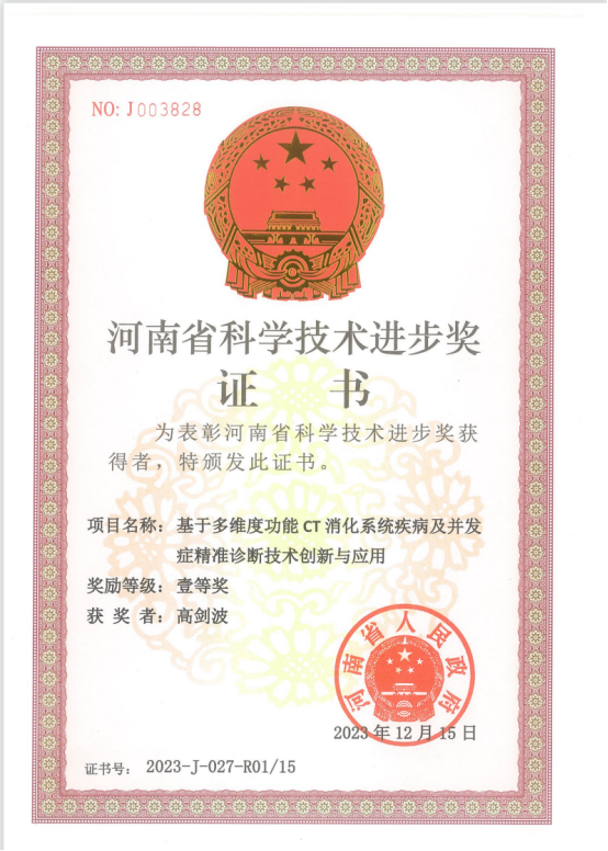 《基于多维度功能CT消化系统疾病及并发症精准诊断技术创新与应用》项目由德赢AC米兰中国官方网站第一附属医院高剑波教授带领项目团队成员开展,主要完成人有张永高、吕培杰、梁盼、吴艳、刘杰、程晓光、唐磊、杨慎宇、郭华、岳松伟、高歌、李一鸣、周悦和杨志浩等人。主要完成单位为德赢AC米兰中国官方网站第一附属医院、北京积水潭医院、北京大学肿瘤医院、暨南大学、北京大学第一医院和北京深睿博联科技有限责任公司。该项目荣获2023年度河南省科学技术进步奖一等奖。