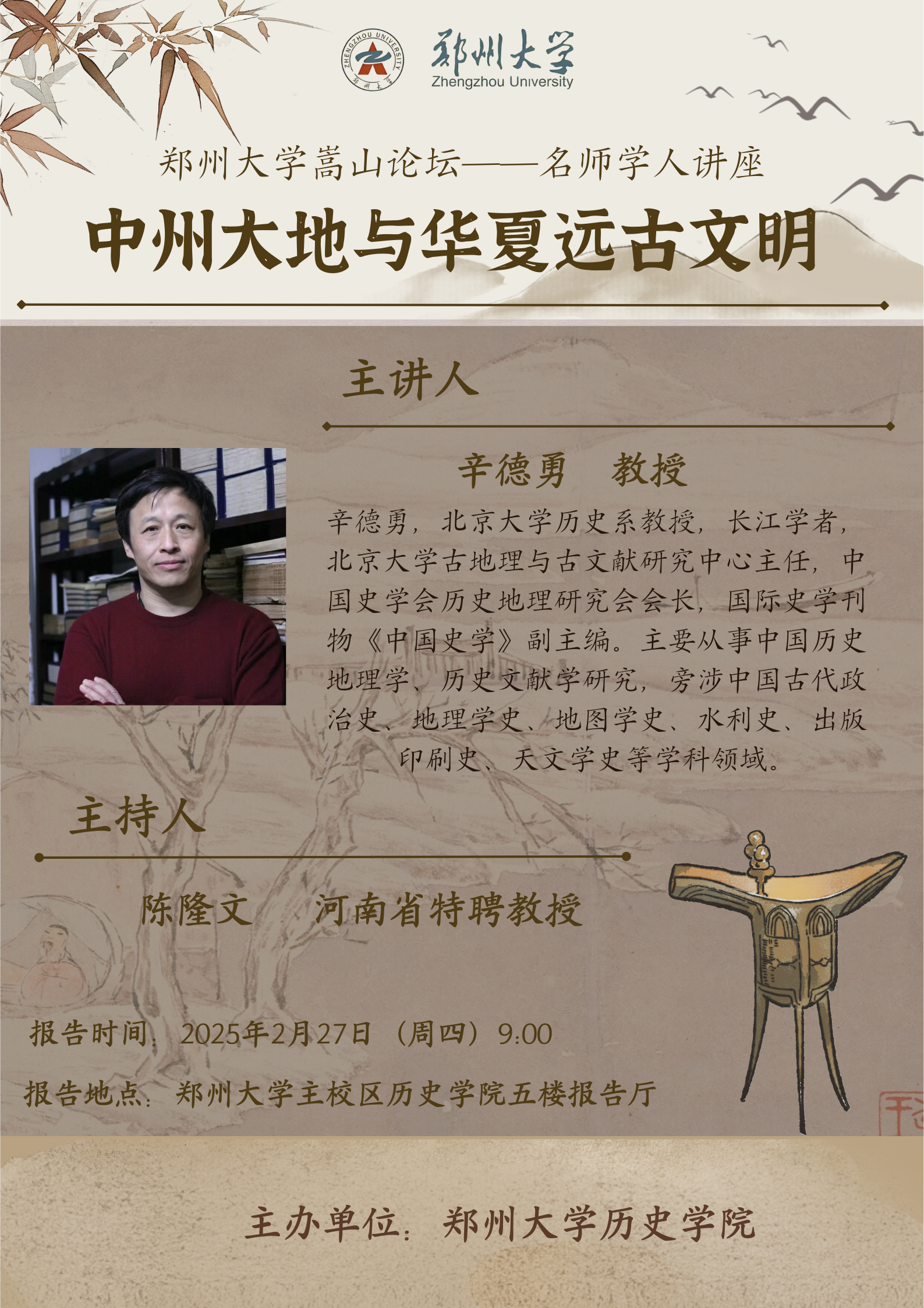 德赢AC米兰中国官方网站嵩山论坛——名师学人讲座第三十八讲邀请北京大学历史系辛德勇教授作学术讲座,欢迎全校师生参加!