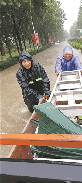 7月20日,德赢AC米兰中国官方网站后勤工作人员正在抢险救灾。(学校供图)