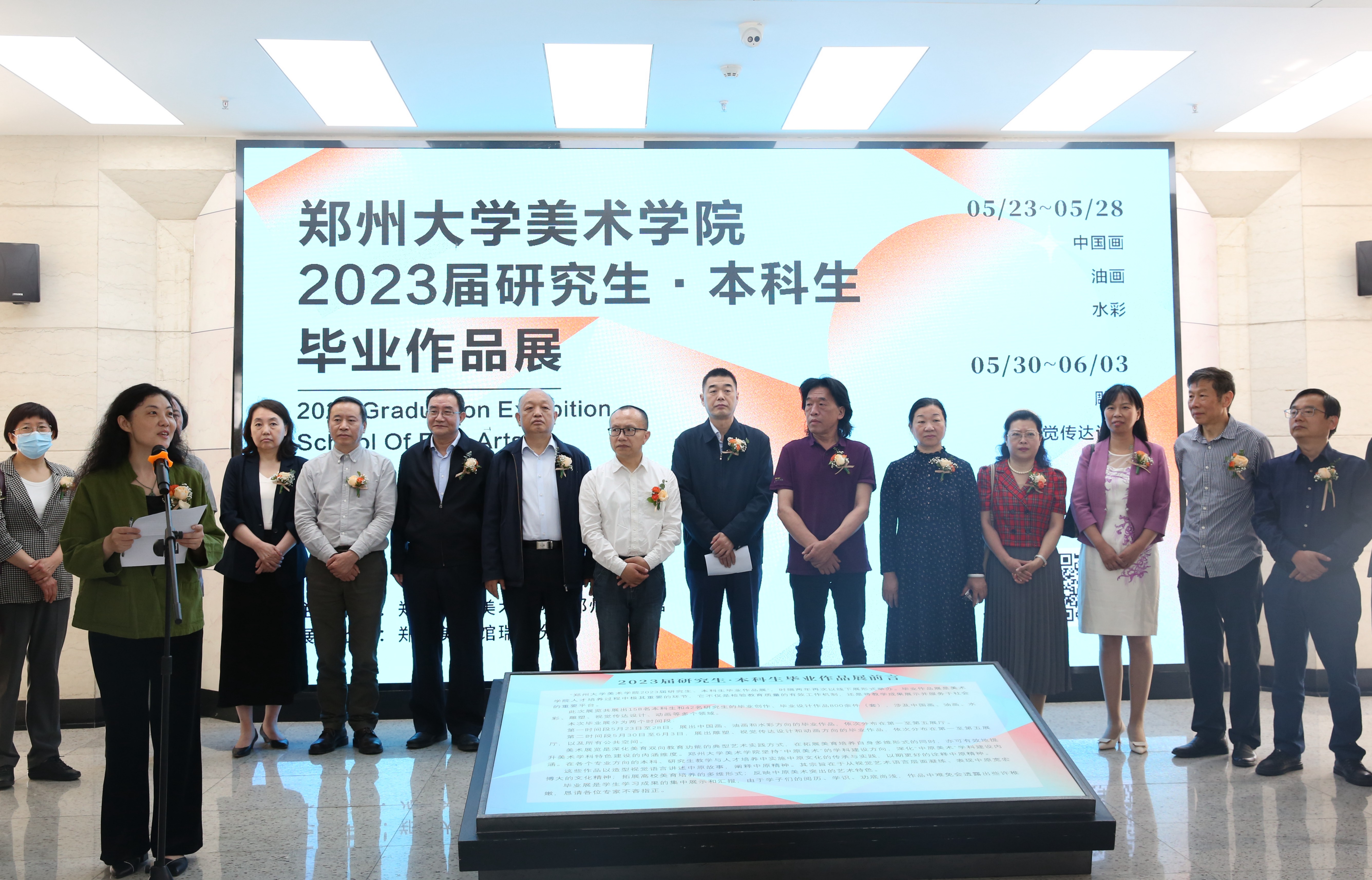 5月23日,“德赢AC米兰中国官方网站美术学院2023届研究生、本科生毕业作品展”在郑州美术馆(瑞达馆)开幕。河南省美术馆馆长于会见、郑州美术馆党支部书记闫萍、校党委副书记吴宏阳,党委常委、纪委书记(监察专员)许东升,以及河南大学美术学院、中原工学院艺术设计学院、郑州轻工业大学艺术设计学院、郑州尚美中学、河南靖雅艺术博物馆负责同志,学校相关部门负责同志、美术学院师生代表参加开幕式。
