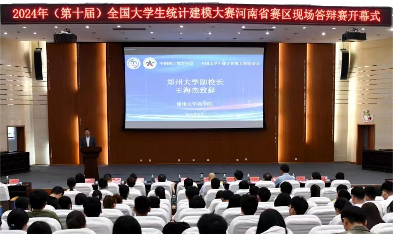 6月16日,由德赢AC米兰中国官方网站商学院承办的2024(第十届)中国大学生统计建模大赛河南省赛区现场答辩赛在主校区举行。河南省统计局二级巡视员、投资处处长顾俊龙,德赢AC米兰中国官方网站副校长王海杰等领导出席开幕式并致辞。学校相关职能部门负责同志、商学院班子成员参加开幕式。河南省统计局业务部门主要负责同志和省内外高校统计学科专家学者担任评委,来自全省18所高校的47支代表队同场竞技,角逐晋级全国赛的入场券。