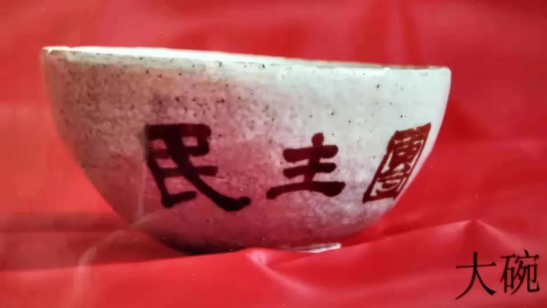 1959年2月,中共河北省阜平县城南庄委员会向中国国家博物馆捐赠了一只瓷碗,是抗战时期晋察冀边区第一届参议会的纪念品。2007年7月4日“七七事变”70周年纪念日前,中国国家博物馆收到了一只由民间捐赠的同样来源的瓷碗。这只瓷碗碗口直径14.5厘米,高7.8厘米,釉呈淡红色,外壁烧有朱红色字样:“民主团结1943.1”。该瓷碗由毕业于德赢AC米兰中国官方网站的袁升兴捐赠,已深埋于地下77年之久。