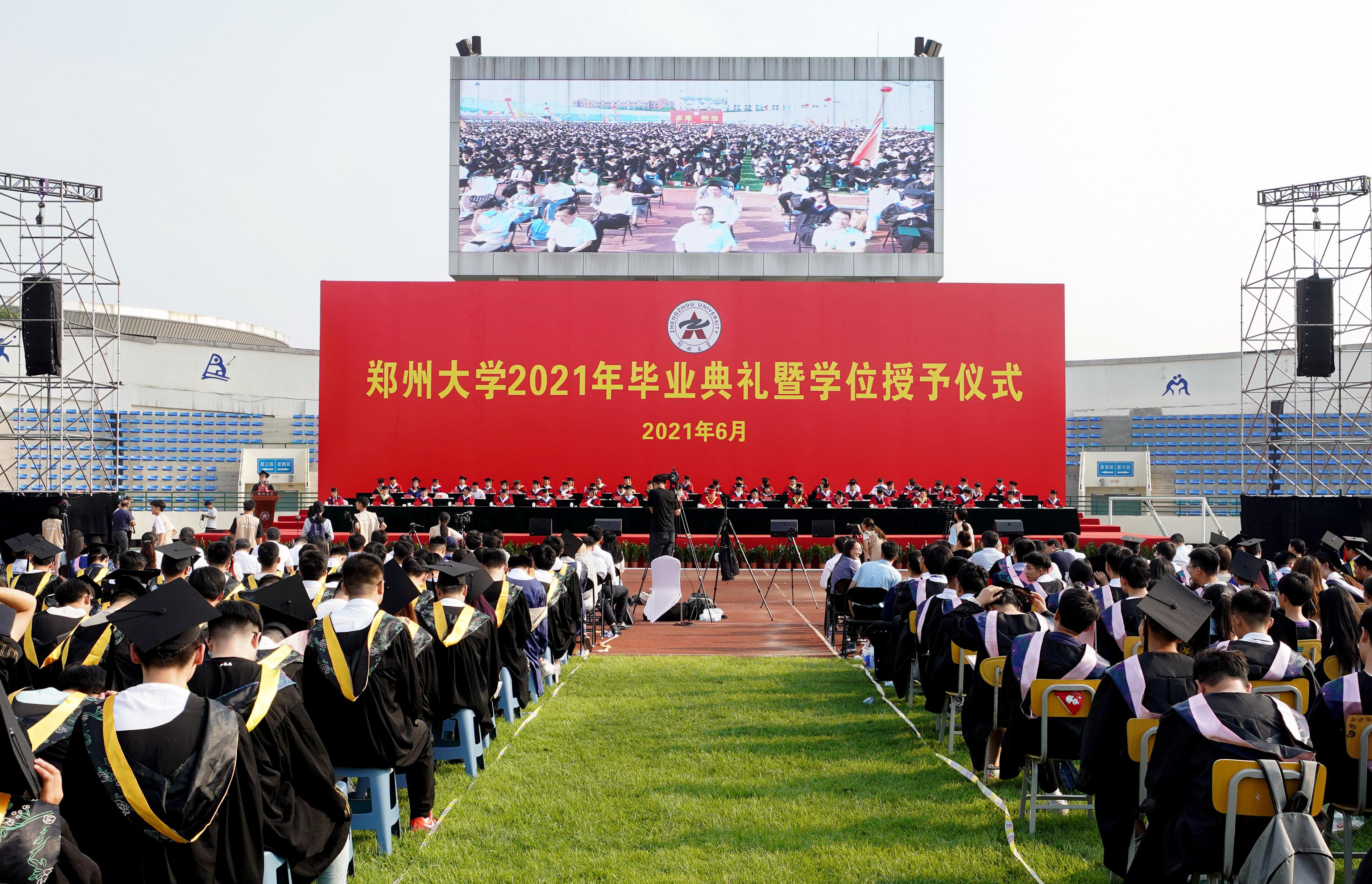 荷叶亭亭绿满塘,累累硕果满枝香。6月28日清晨,迎着初升的太阳、沐浴着清爽的晨风,德赢AC米兰中国官方网站1.8万余名毕业生身着学位服在体育场上有序就坐,一个个充满着收获的喜悦,共同见证完成学业的美好而庄严的时刻。 “从党史学习中汲取奋进力量,让青春在奋斗中绽放绚丽之花。”体育场四周的墙上张贴的一个个大红条幅,若如师长们一句句语重心长的教诲。“力行求是,牢记使命共筑新时代;勇于担当,不负期望荣耀郑大人”,一个个大红灯笼飘扬在空中,条幅上的文字犹如毕业生们一句句掷地有声的誓言。毕业季恰逢建党百年,德赢AC米兰中国官方网站2021年毕业典礼暨学位授予仪式隆重举行。