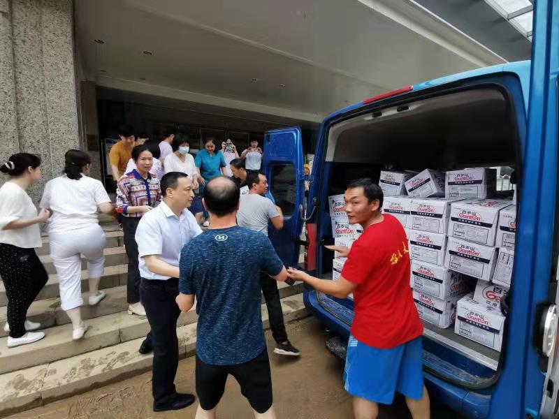 7月21日,社会各界纷纷捐献物资帮助医院渡过难关。短时间内如何调配短时间内送来的大量物资是很棘手的工作。为了保证公平和发放速度,让职工、患者和家属第一时间吃上捐赠的食品。“我们以支部为单位,发动各个科室,轮椅、平板车齐上阵,化整为零运输物资,提高了运输效率。”
