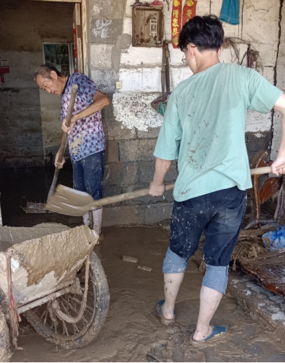 2020级美术学院本科生刘政妥在辉县洪灾过后帮助老乡清淤