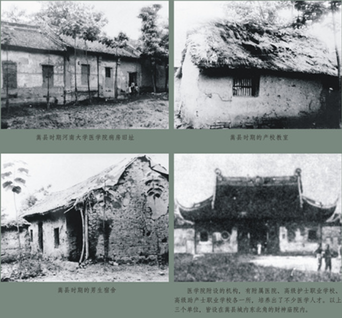 另一方面,郭鑫斋院长带领部分职工组成的第十一重伤医院南下不久,战火就逼近了开封。留守在开封医院的另外一部分医务人员随着河南大学一起西迁至镇平县。在镇平县借用了庙宇、祠堂,还要当地人民的部分民房开设了些许门诊和病房,为当地人民的疾病预防和治疗付出了时间和精力。后来,因为日军继续西犯,镇平县朝不保夕。这一部分医务人员又奉上级命令,迁往嵩县。在嵩县的日子里,经过一段时间的短暂准备,医学同仁再次开诊、复课。继续为人民服务。但是,客观条件十分苛刻。嵩县,地处山区,交通闭塞,虽然远离战火威胁,生活相对稳定,但是医学同仁在这里仍然胆战心惊。可幸的是,医院为群众治疗了不少顽症,同时积极开展了多种抗日救亡活动,就这样渡过了五年的艰苦岁月。至一九四四年五月,日军攻占了临汝县,嵩县形势危急,职工仓促西撤,行至潭头西北处,不幸遭遇日寇,为伤病患者彻夜不眠的医务人员中,有人惨遭屠杀,有人跳崖殒命,有人被逼自尽。幸存者冒着枪林弹雨,沿着崎岖山路,翻山越岭,经月余辗转迁徙,抵达豫鄂陕边陲重镇——荆紫关。
