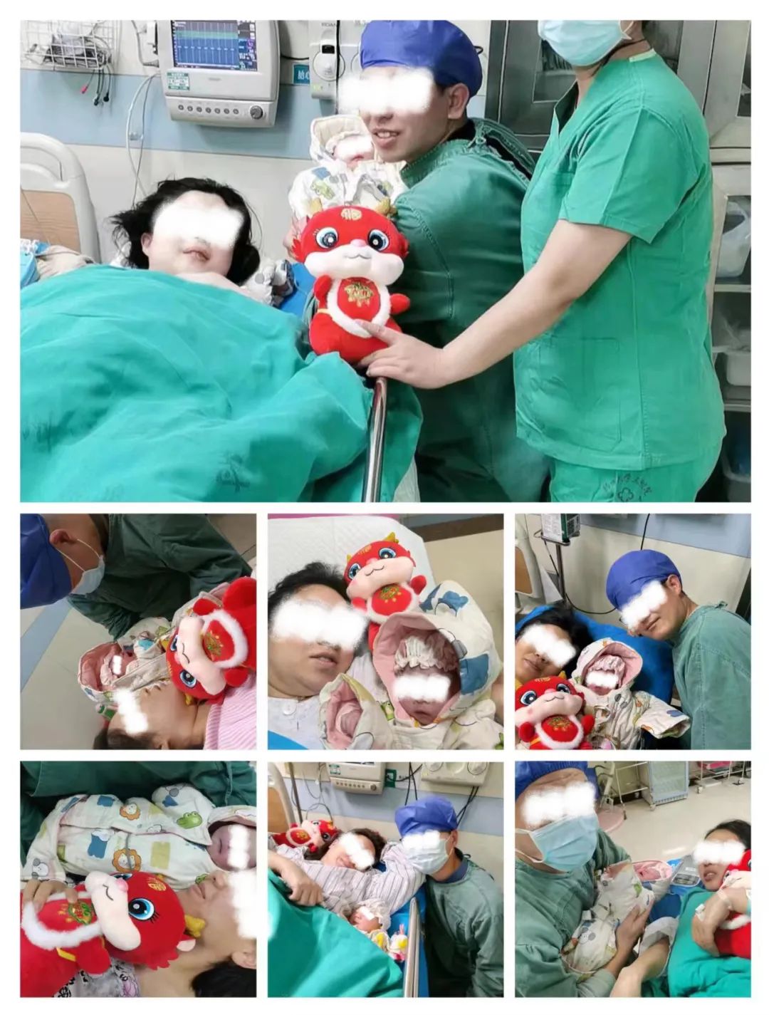 在手术过程中,医疗团队紧密合作,默契配合,迅速而准确地完成了剖宫产手术。经过团队的全力救治,产妇的出血得到了有效控制,母子平安。当听到孩子清脆的啼哭,抢救团队成员们相视一笑,仿佛在用无声的语言说着,新年快乐。