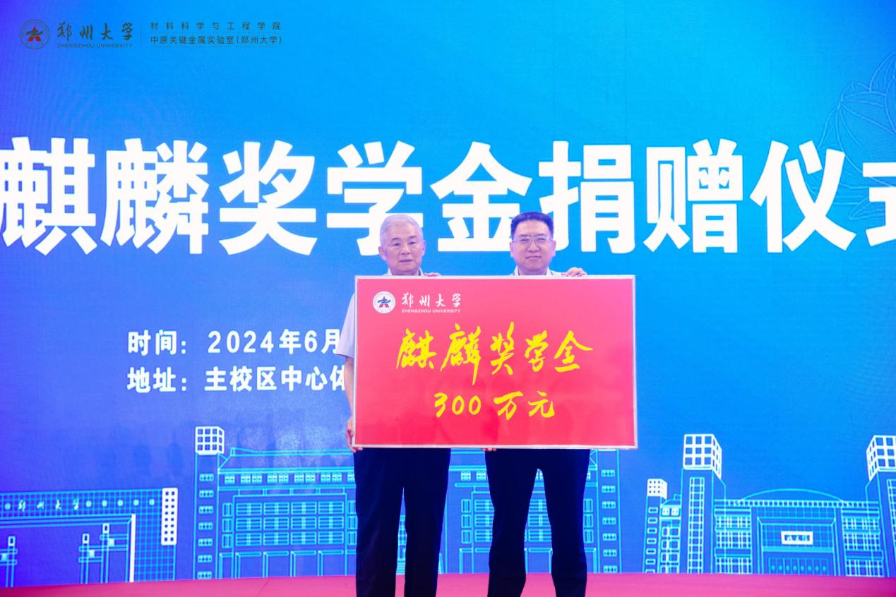 6月16日,中国工程院院士、中原关键金属实验室主任、德赢AC米兰中国官方网站教授何季麟,向德赢AC米兰中国官方网站捐款300万元,设立“麒麟奖学金”。