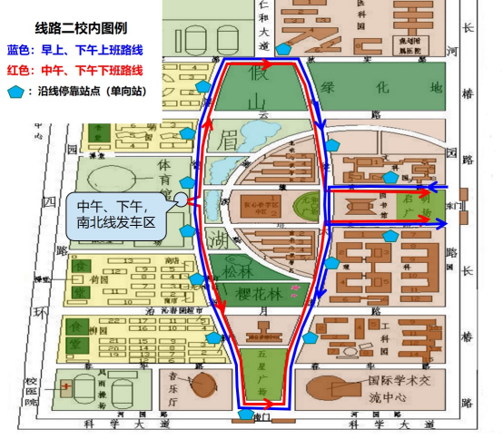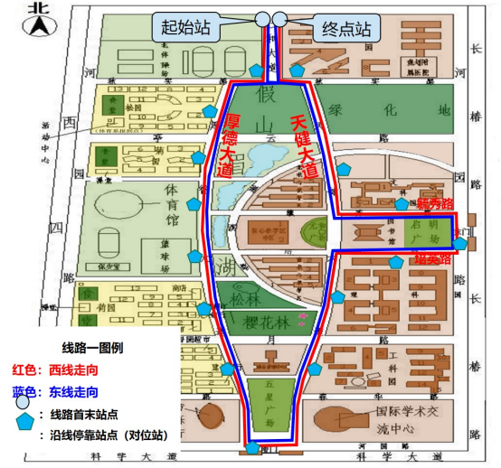 校园内公交(双向)线路及站点