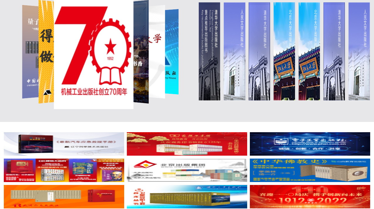 2.1出版社分会场:按出版社综合分类和出版公司名称展示各出版社图书,点击分类首先展示该类别下的出版社名单(按名称首字母排序),点击出版社名称即可进入选书界面。